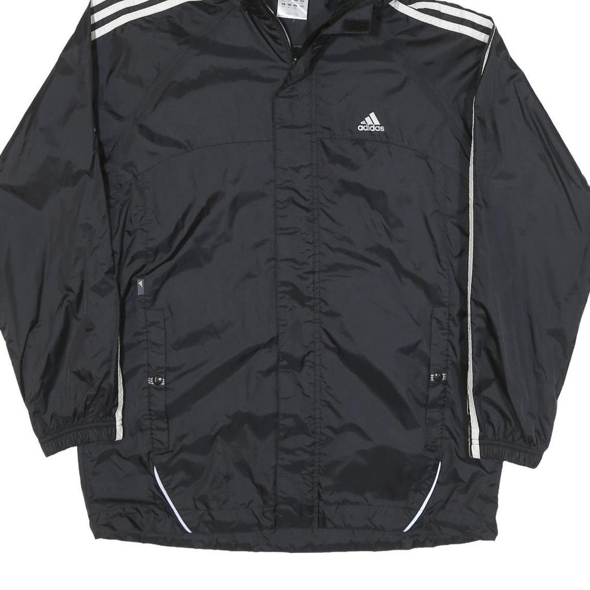 ADIDAS Mens Black White Hooded Zip Jacket L Polyester Blend Track Sports