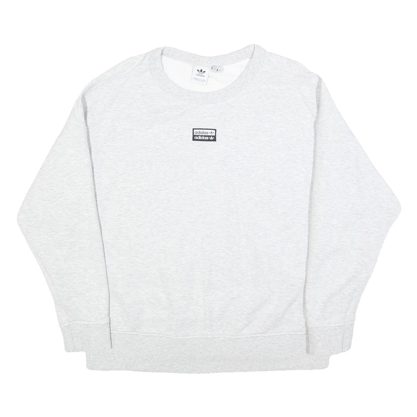 ADIDAS Womens White Crew Neck UK 16 Cotton Blend Sweatshirt Casual Sportswear