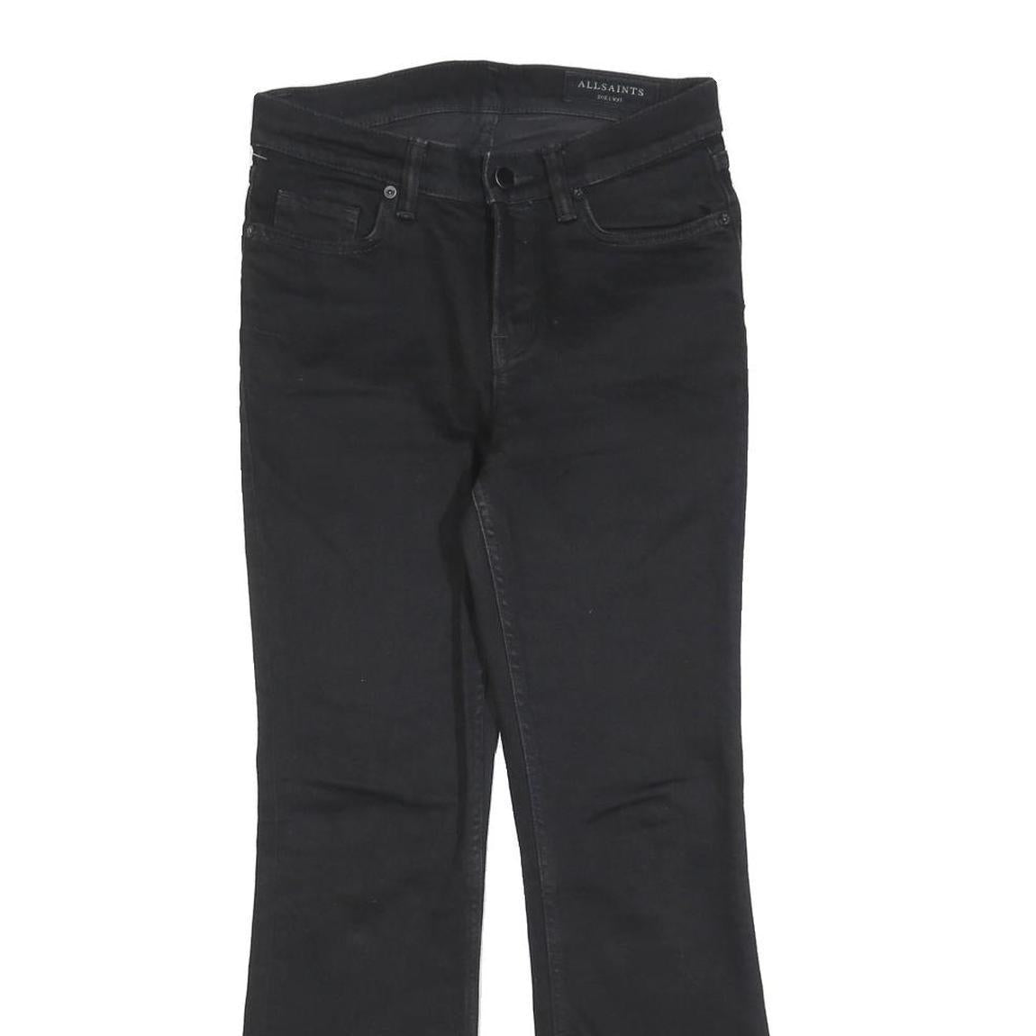 ALL SAINTS Womens Slim Black Jeans Denim Bootcut W27 L27 Raw Hem Zip