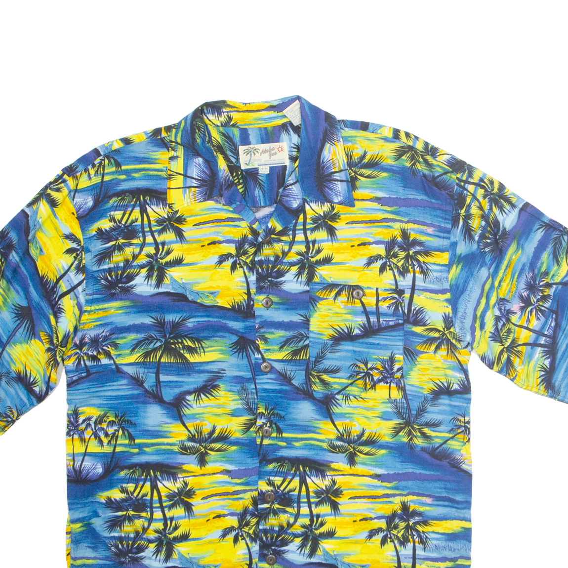 ALOHA JOE Mens Hawaiian Shirt Blue Crazy Pattern M