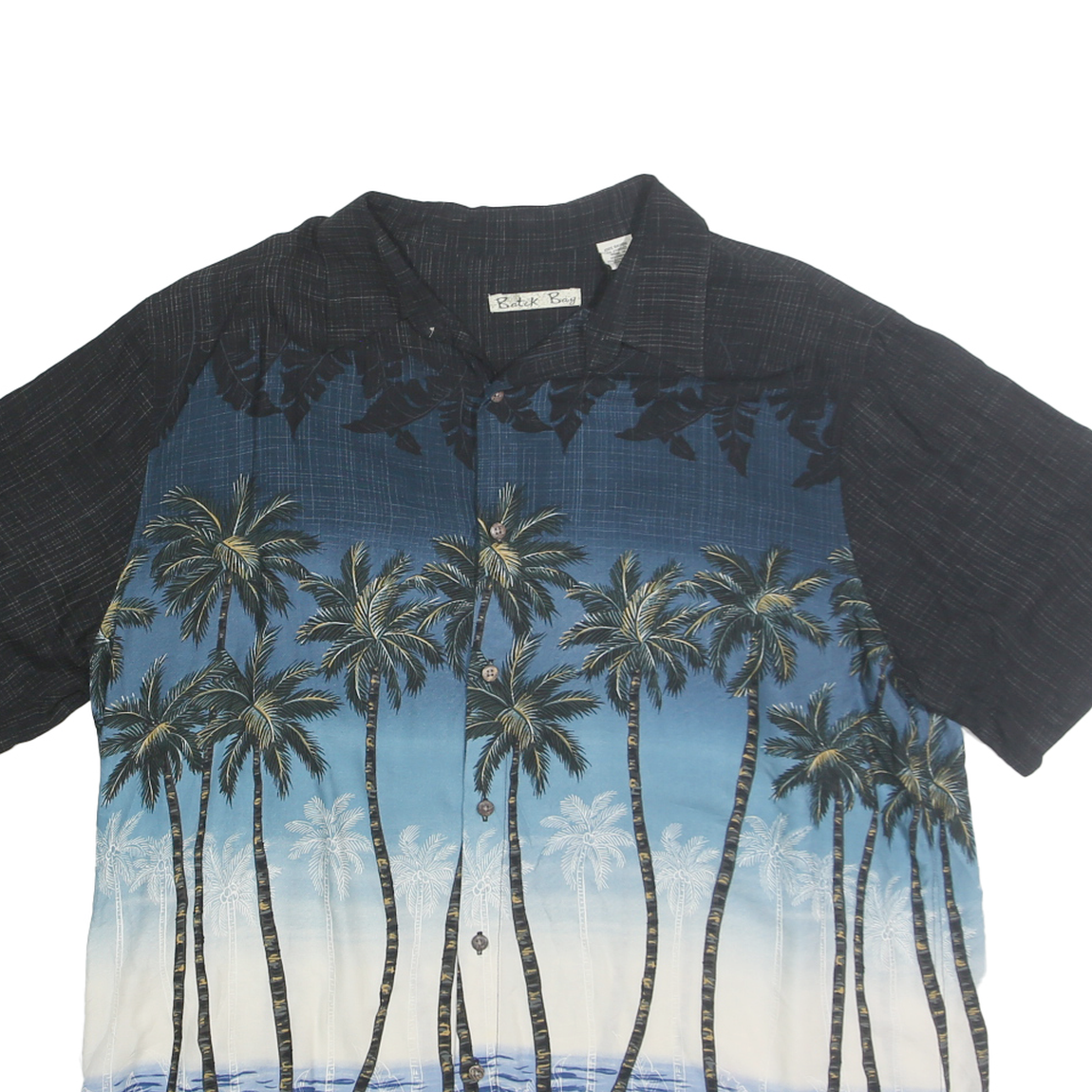 BATIK BAY Mens Black & Blue Hawaiian Rayon Shirt XL Tropical Palm Print Summer