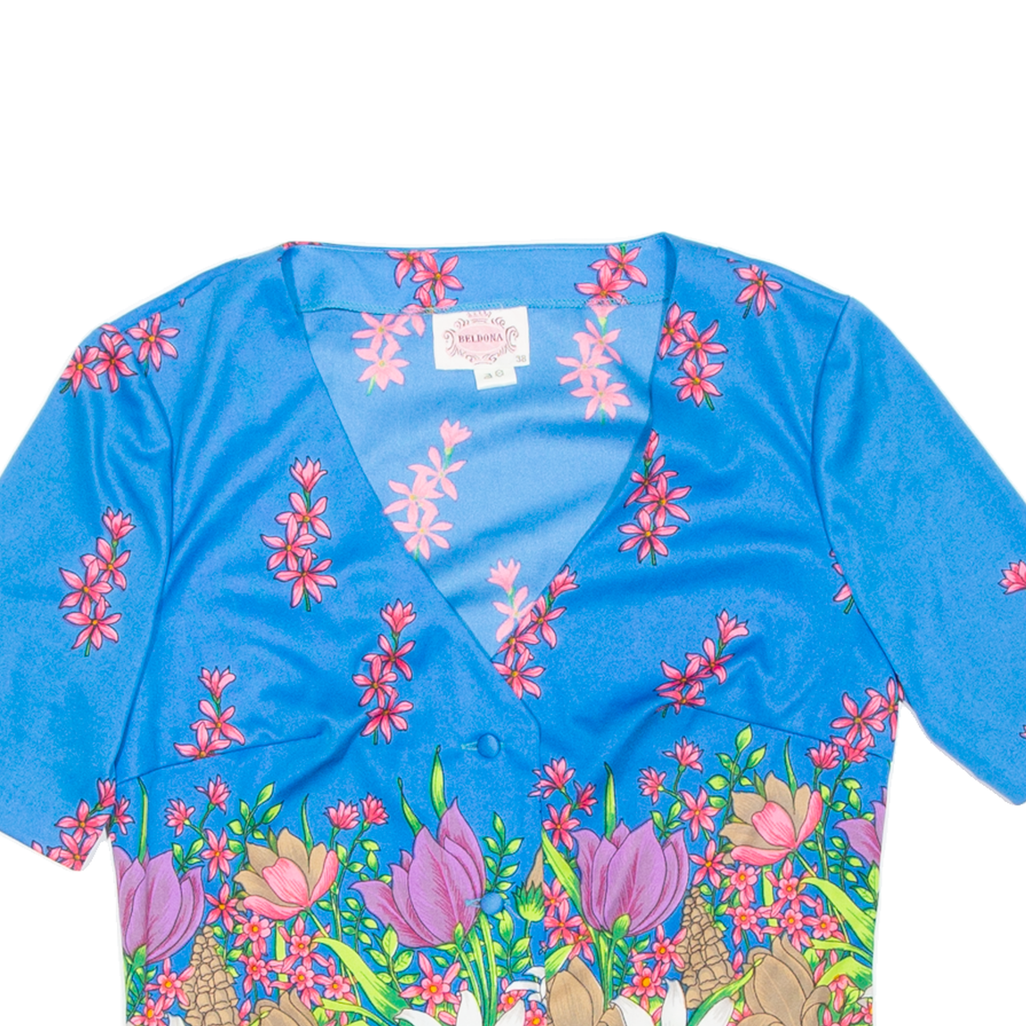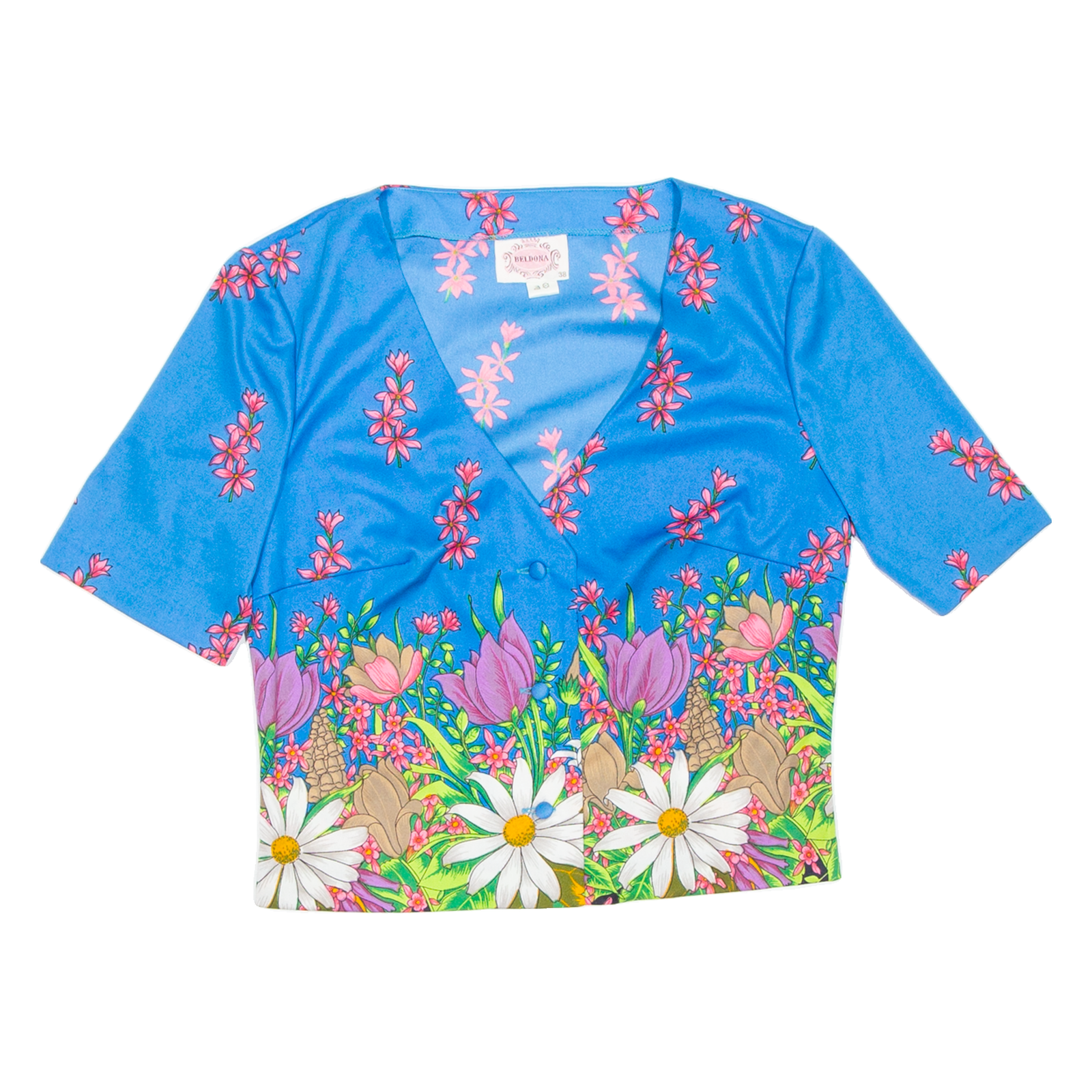 BELDONA Womens Printed Blouse Blue V-Neck Floral S