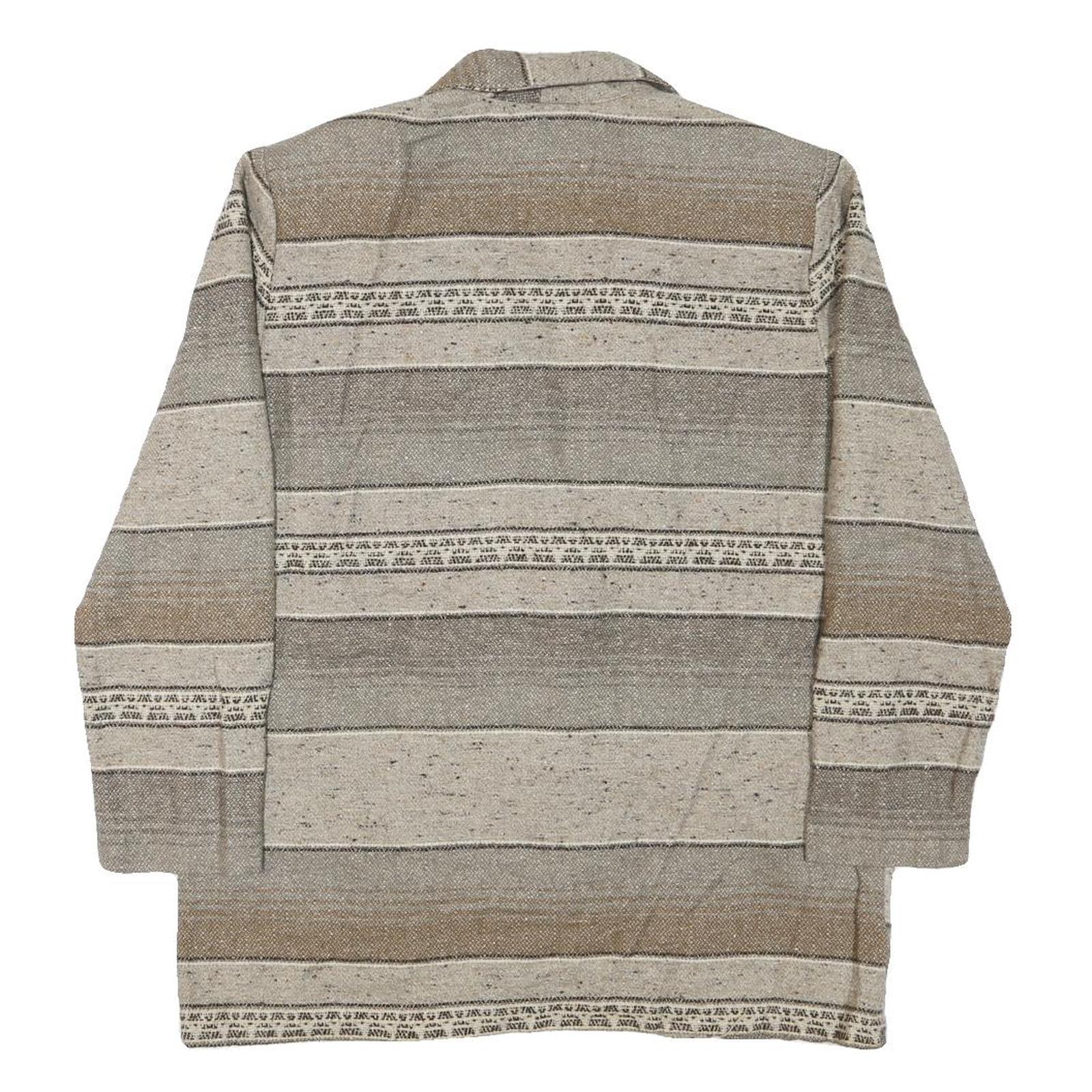 Crafted from a cotton blend fabric, the jacket offers a comfortable and breathable fit suitable for layering. It has long sleeves and a relaxed fit, making it a versatile piece for casual and semi-formal occasions. The back continues the stripe pattern for a cohesive look.