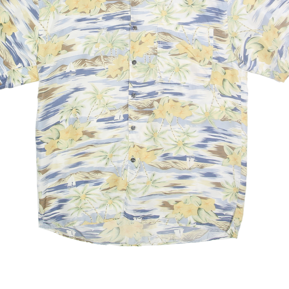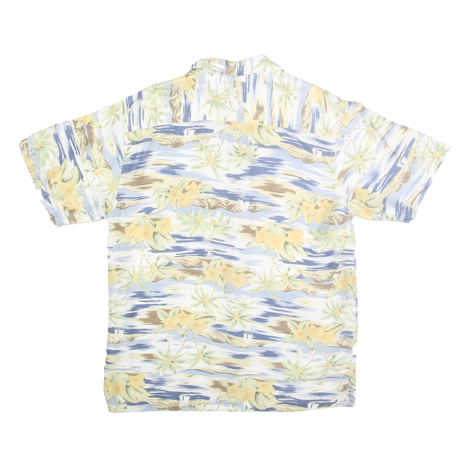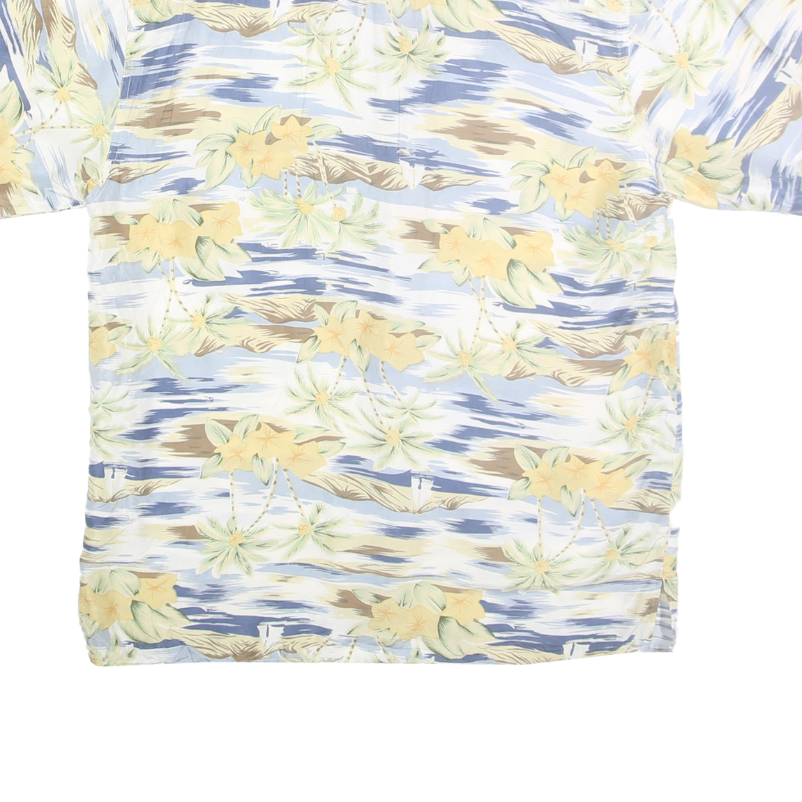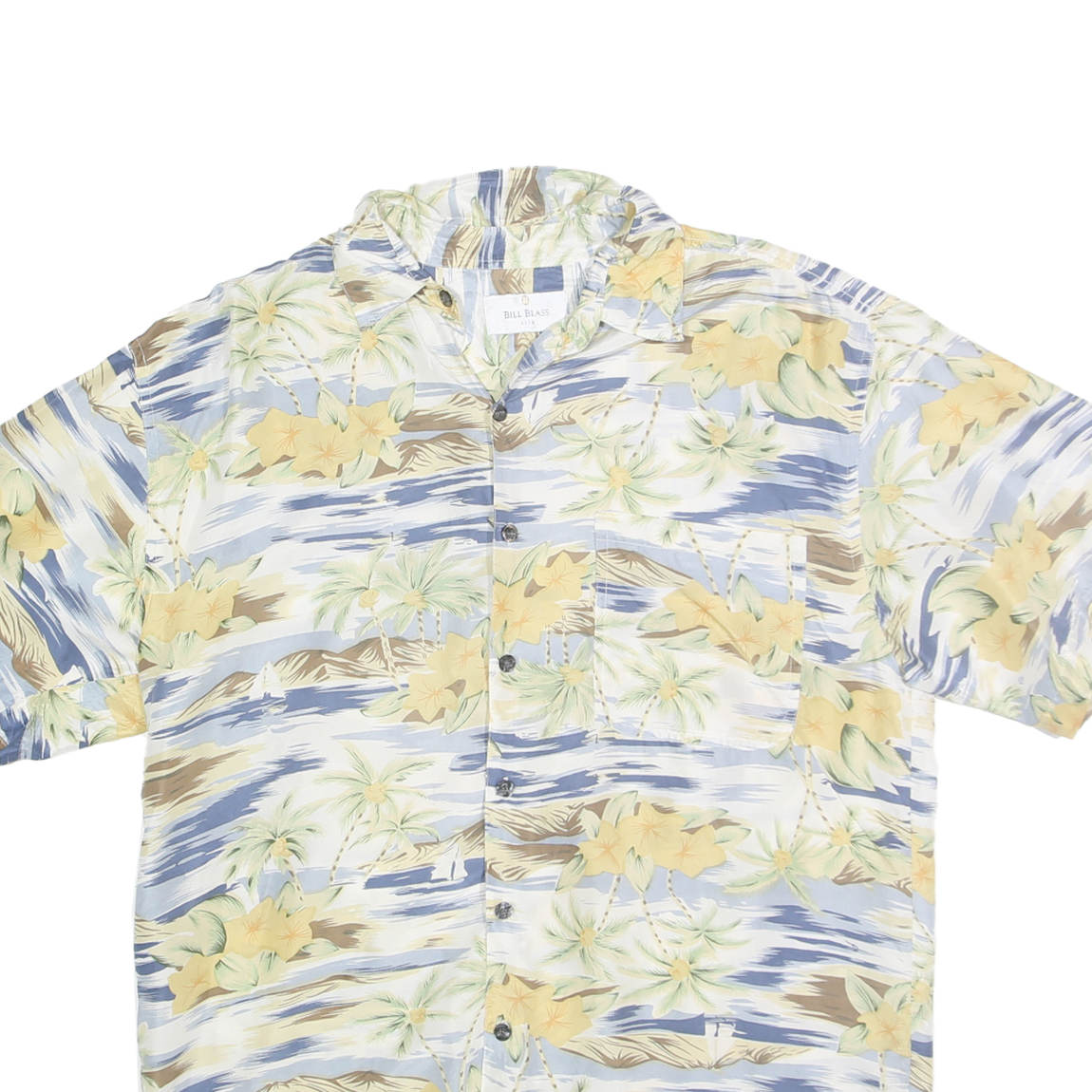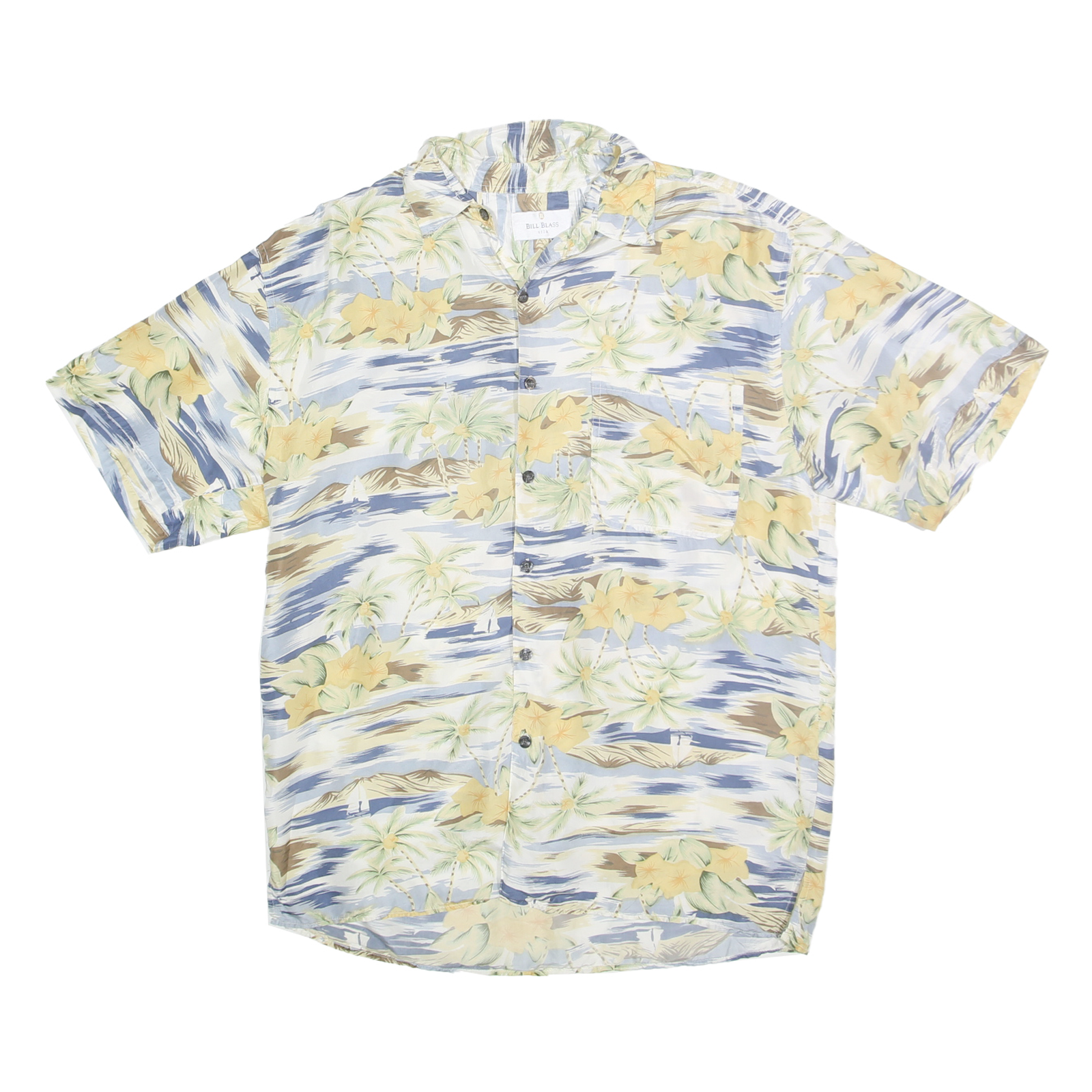 BILL BLASS Mens Blue & Beige Floral Silk Shirt L Hawaiian Style Casual
