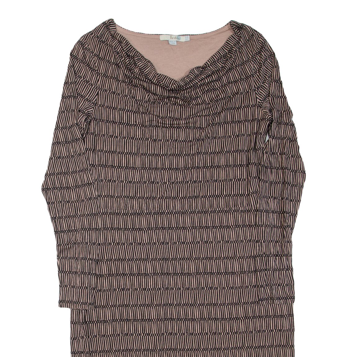 BODEN Womens Day Dress Brown Viscose Striped Long Sleeve Knee Length UK 14