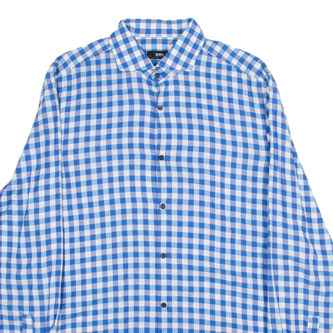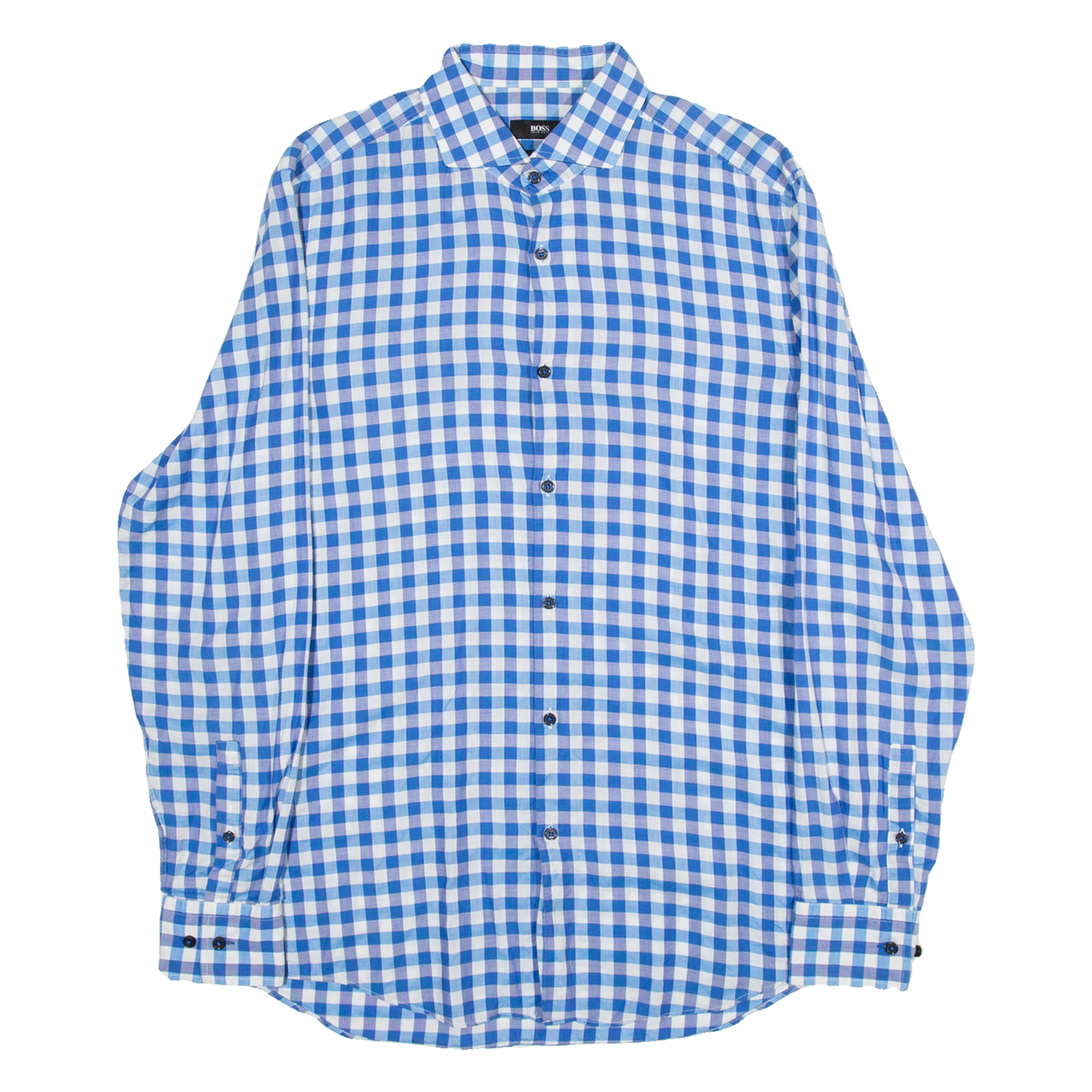 BOSS Slim Fit Mens Shirt Blue Gingham Long Sleeve M