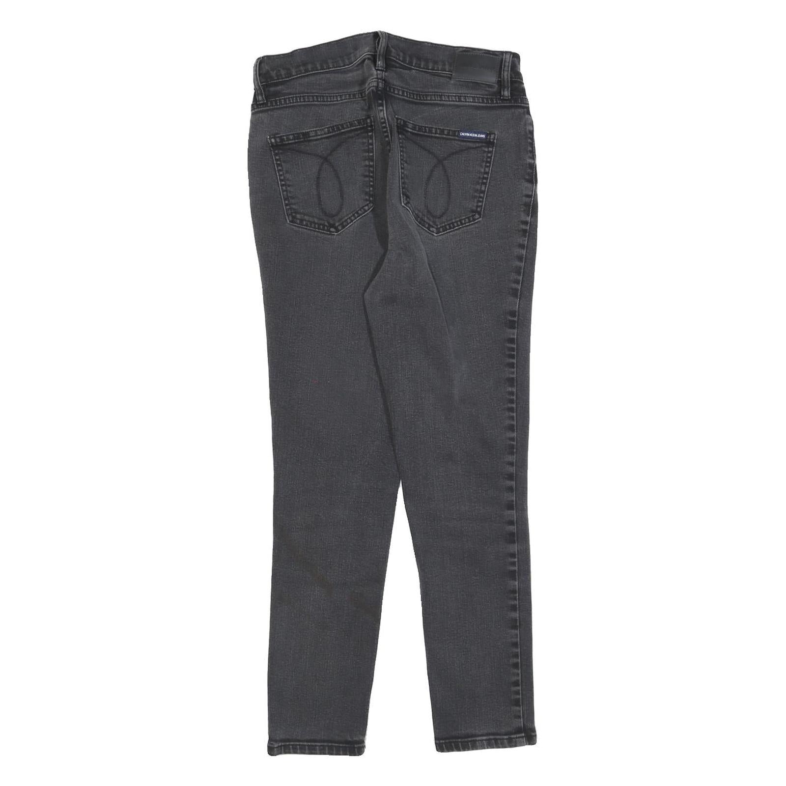 CALVIN KLEIN JEANS Womens Slim Black Denim Raw W28 L25 Slim Fit Button Fly