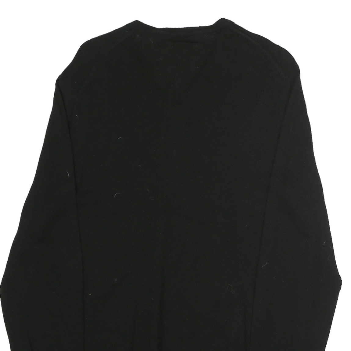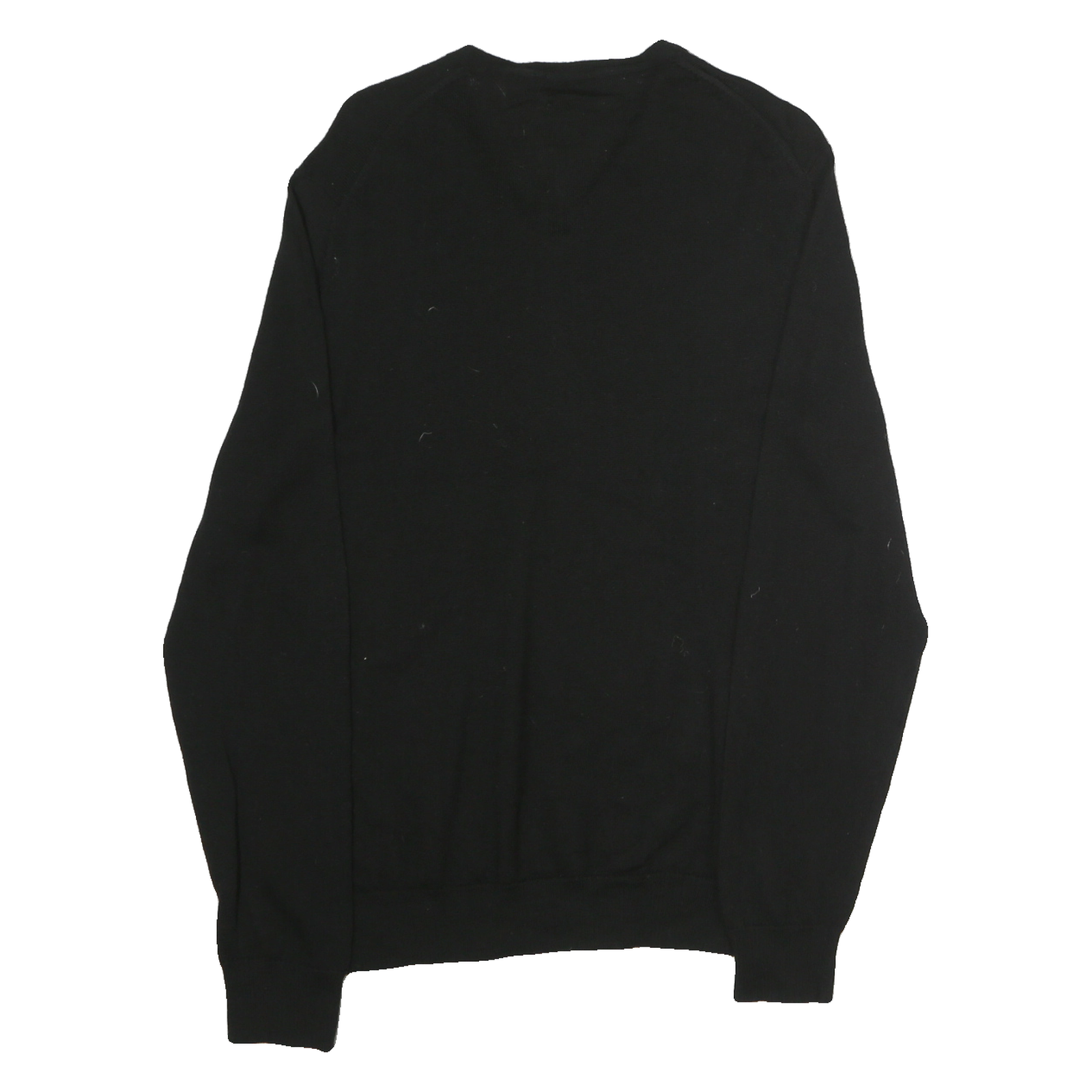 CALVIN KLEIN Mens Black Plain Pullover V-Neck Basic Knit L Cotton Jumper