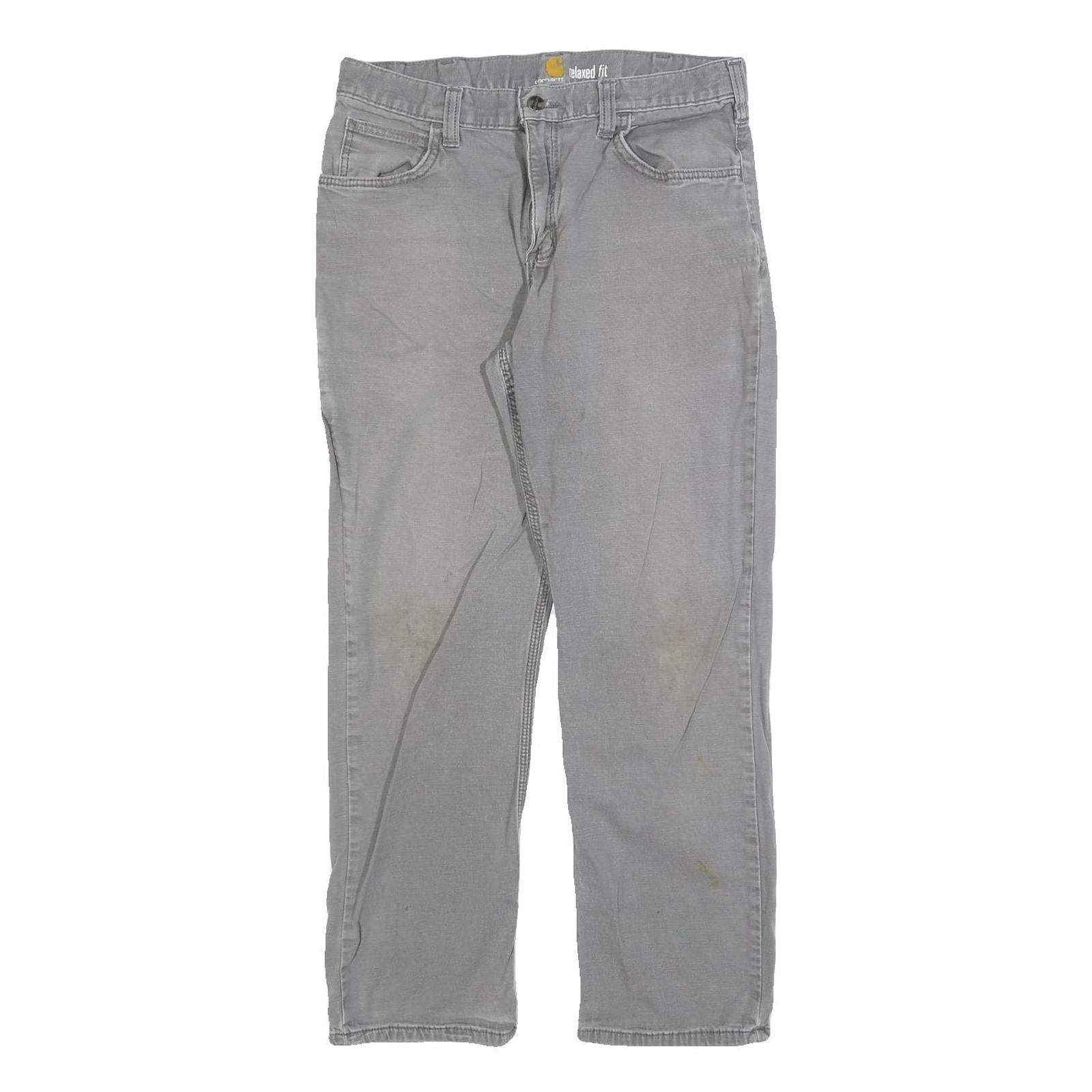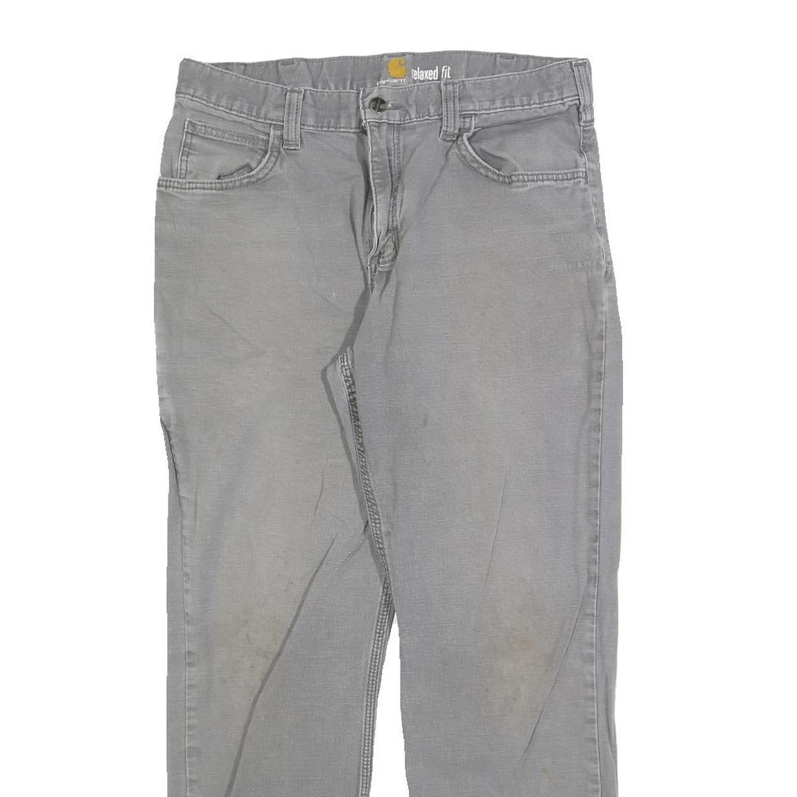 CARHARTT Mens Cotton Grey Relaxed Fit Straight Leg Trousers W32 L30 Workwear Zip