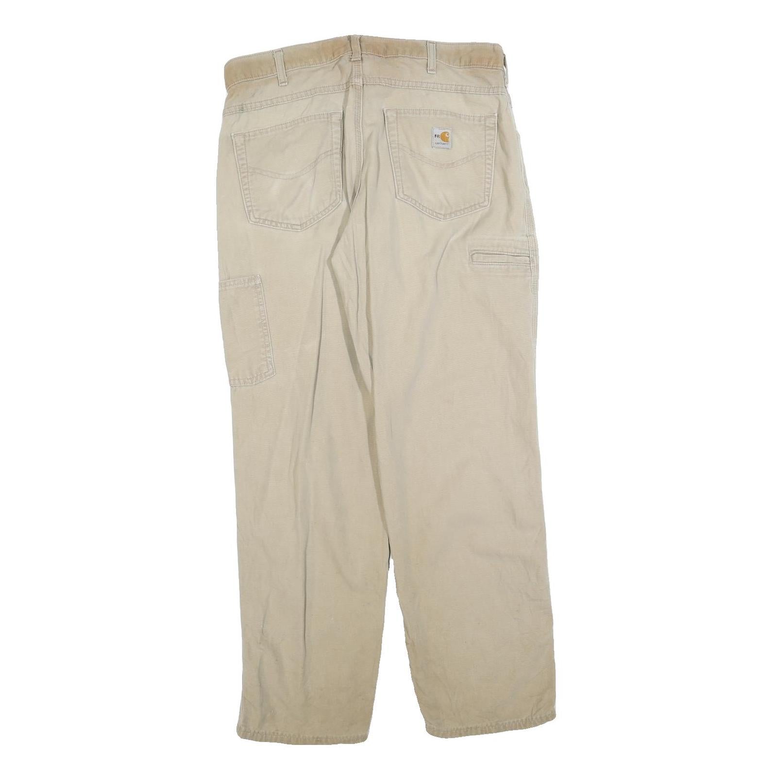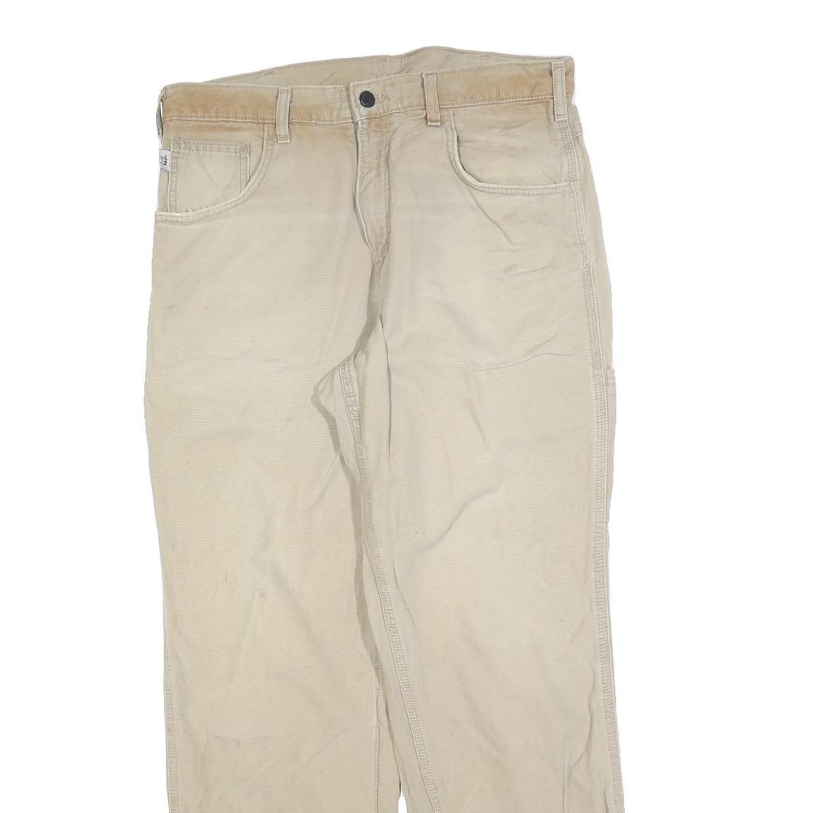 CARHARTT Mens Jeans Beige Relaxed Straight Denim W34 L30 Workwear Utility Zip