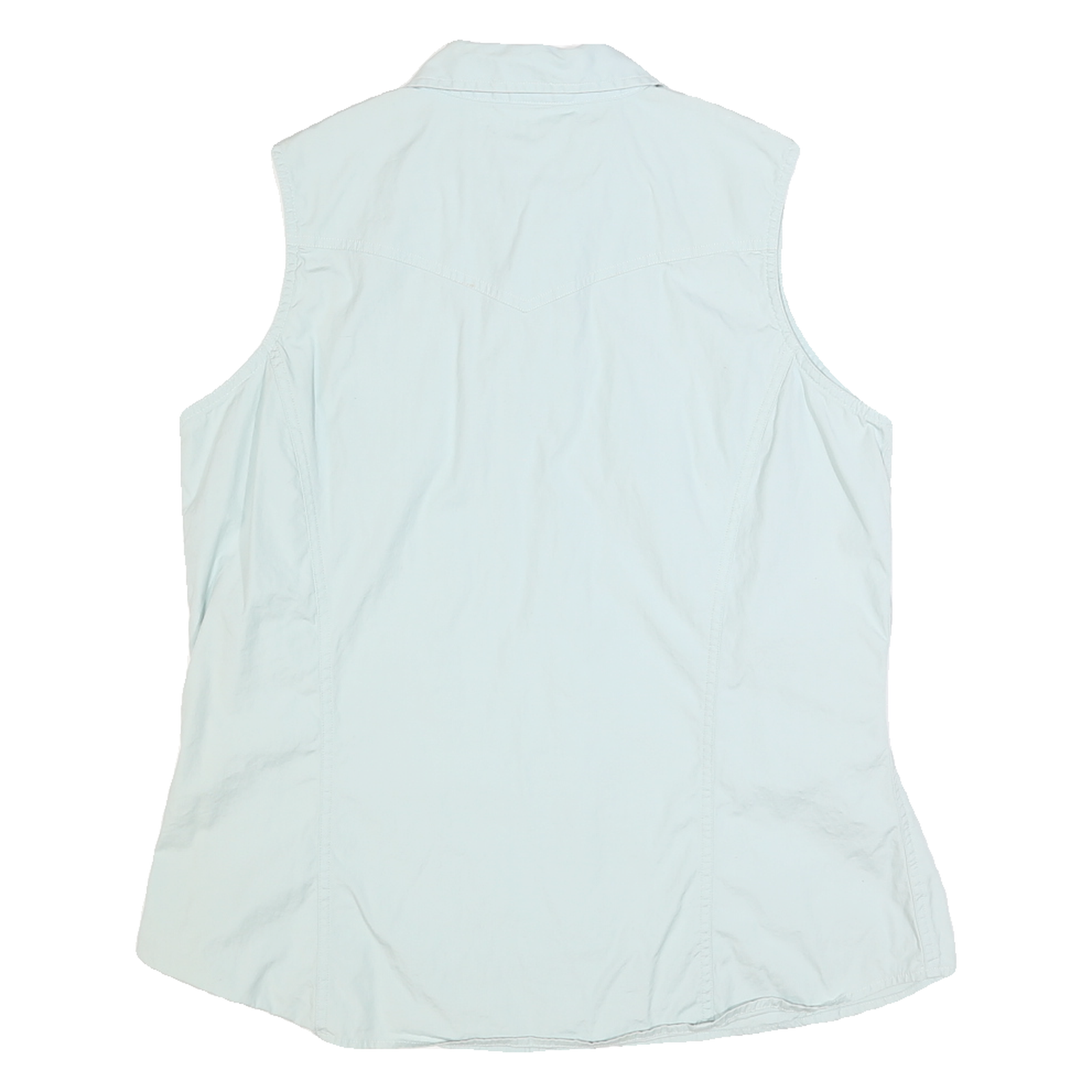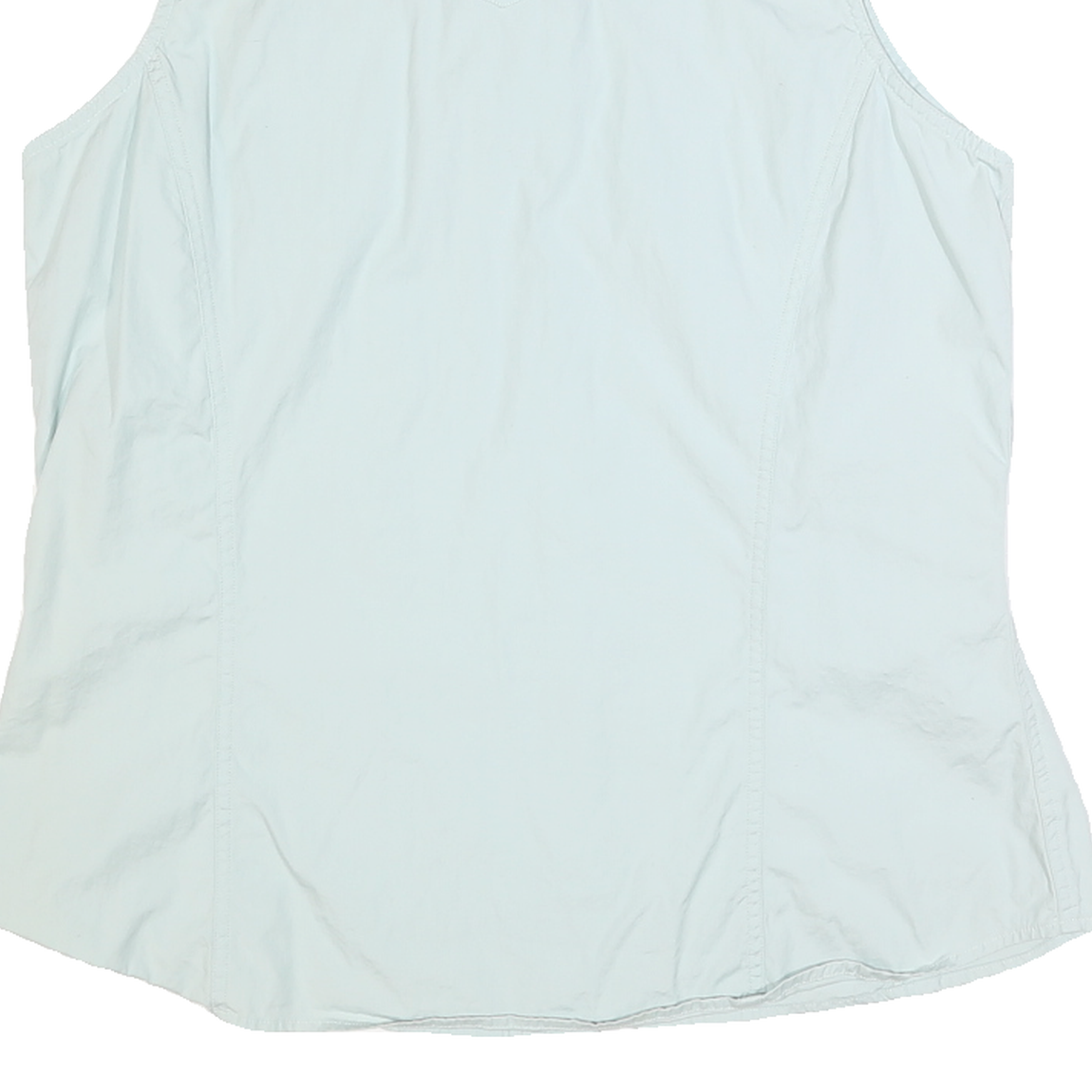 Made from a comfortable cotton blend fabric, this shirt offers a slightly structured yet breathable feel ideal for workwear or casual use. The fit appears relaxed through the body with subtle contouring seams on the sides for a flattering silhouette. Its sleeveless cut and lightweight material make it suitable for layering or warmer days.