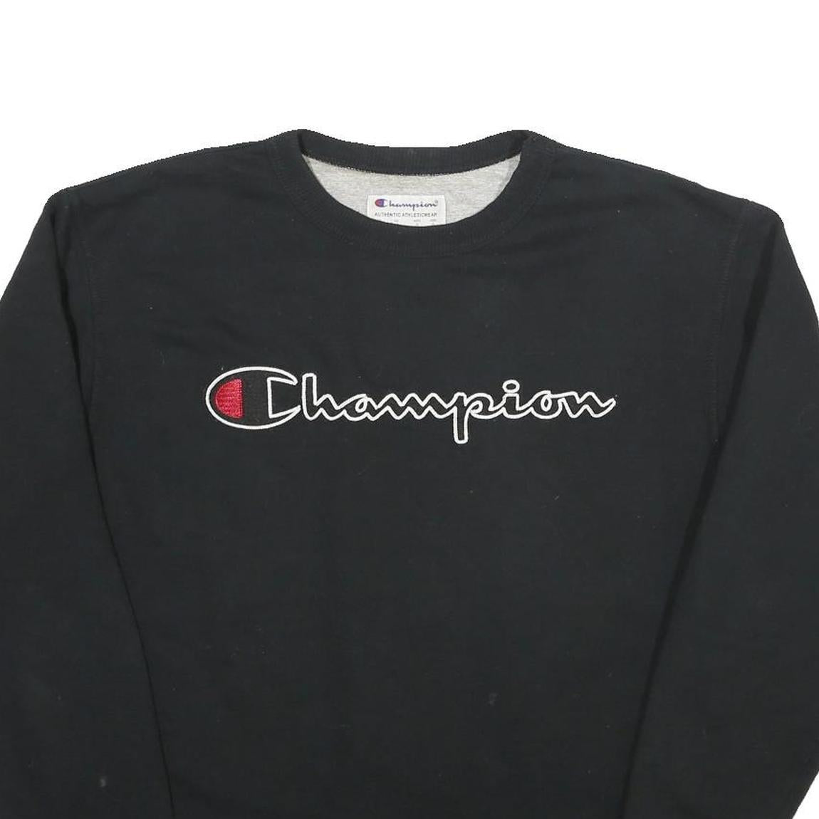 CHAMPION Mens Black Cotton Blend Crew Neck Sweatshirt M Logo Casual