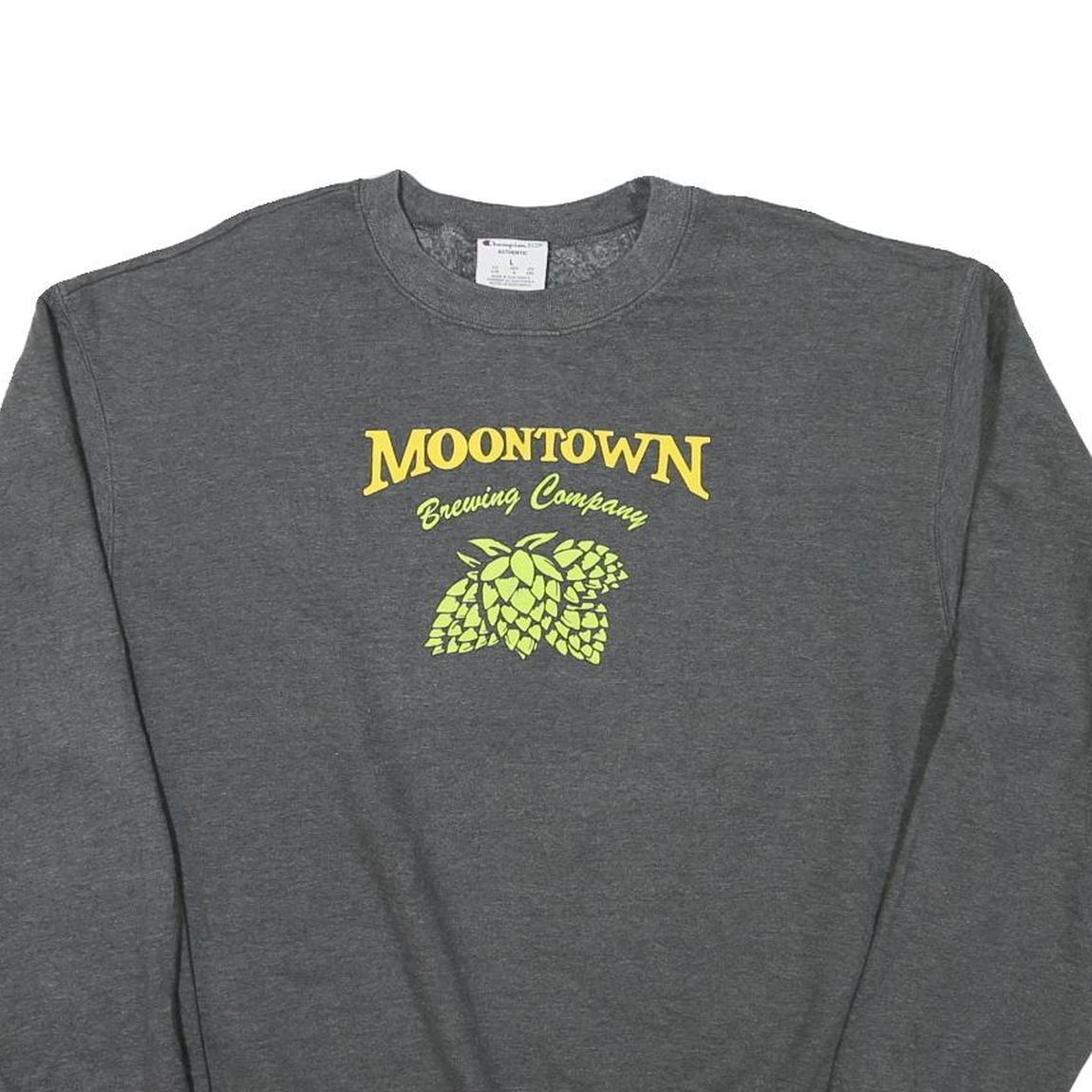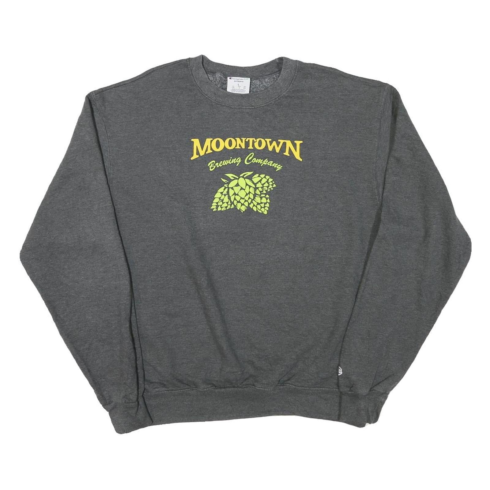 CHAMPION Mens Grey Moontown Brewing Company Crew Neck L Cotton Blend Sweatshirt