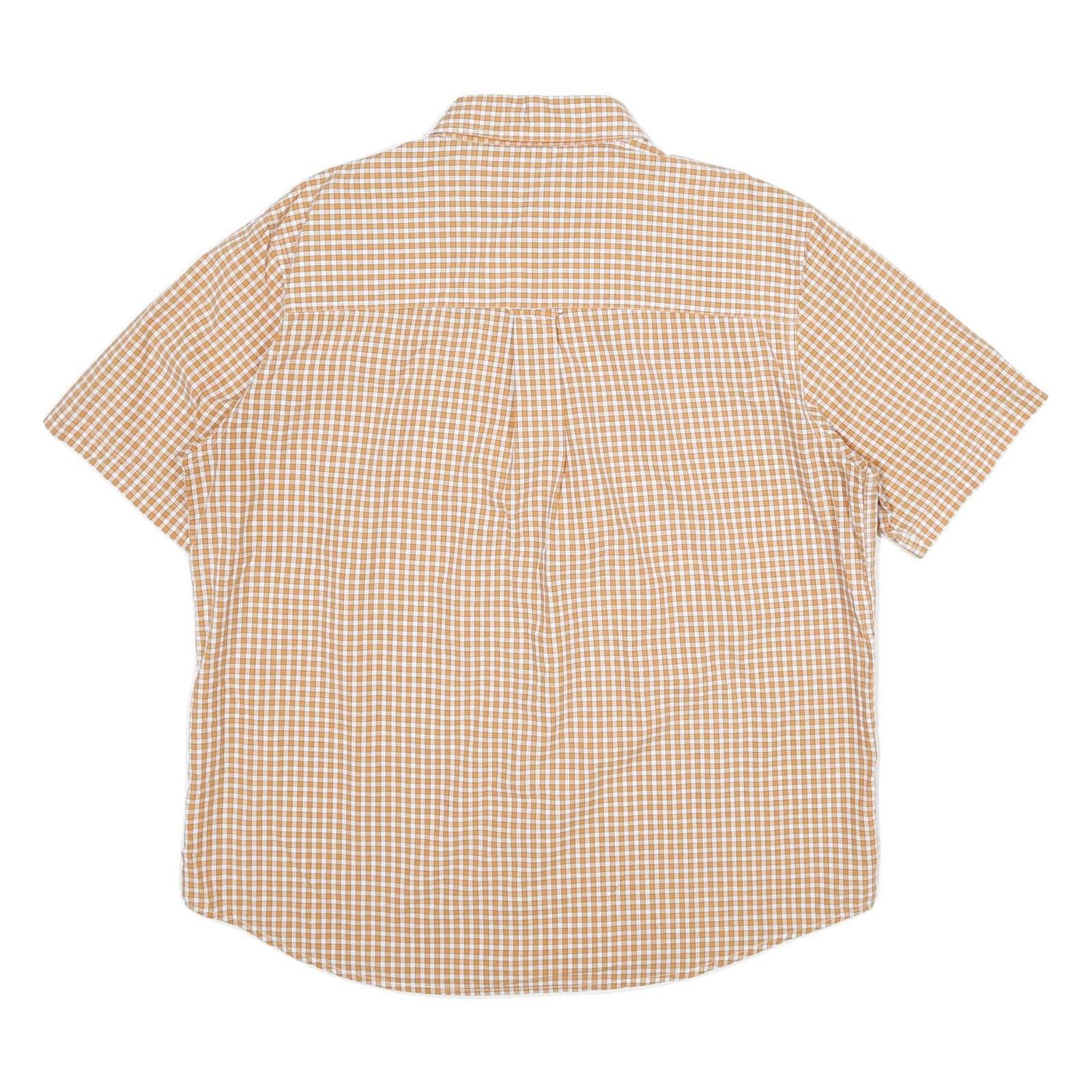 CHAPS Mens Beige & White Check Shirt XL Cotton Button Down Short Sleeve Casual