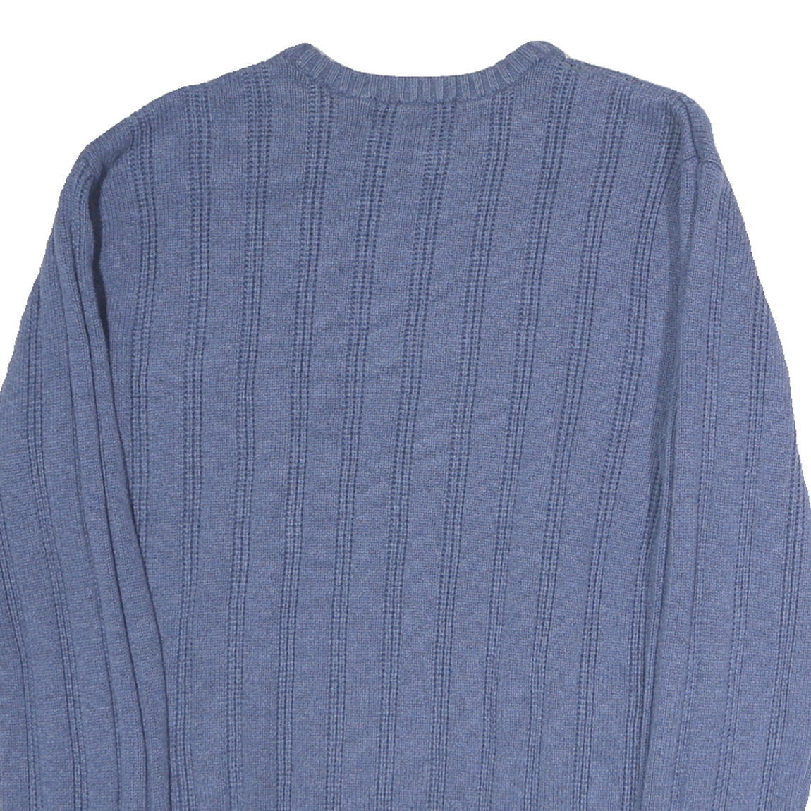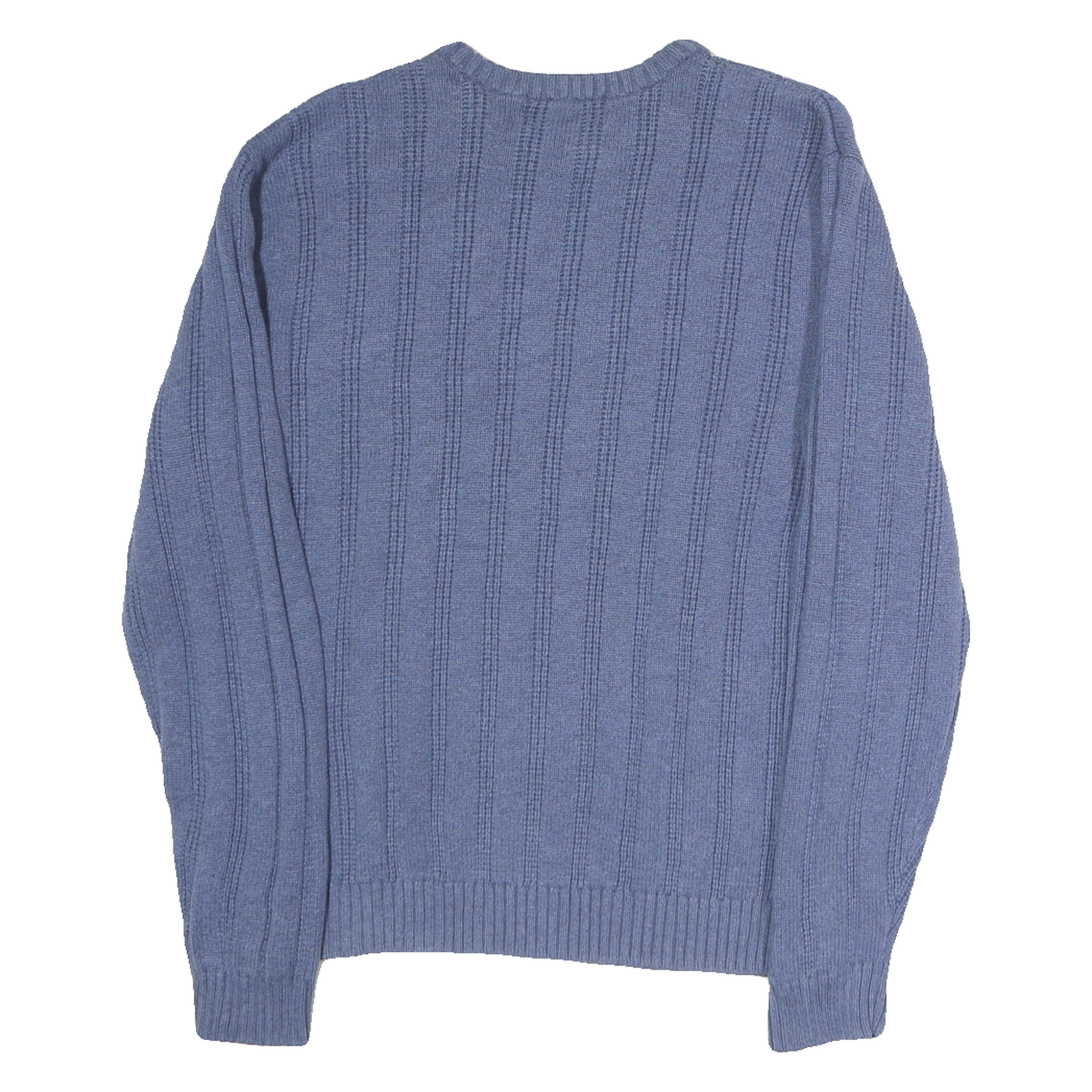This CHAPS mens jumper features a solid blue colour with a subtle vertical ribbed pattern, adding texture and classic style. The iconic CHAPS logo is embroidered on the left chest, delivering understated branding. Crafted from 100% cotton, it offers a soft and comfortable feel that's breathable and ideal for layering.