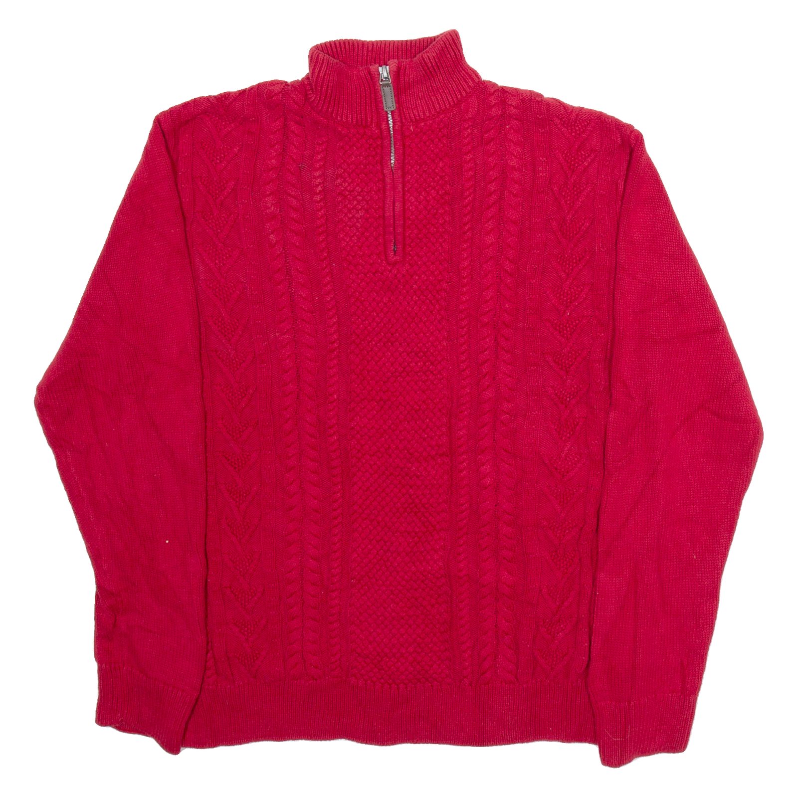 CHAPS Mens Jumper Red 1/4 Zip Cable Knit L