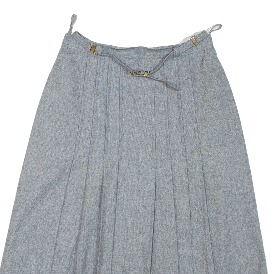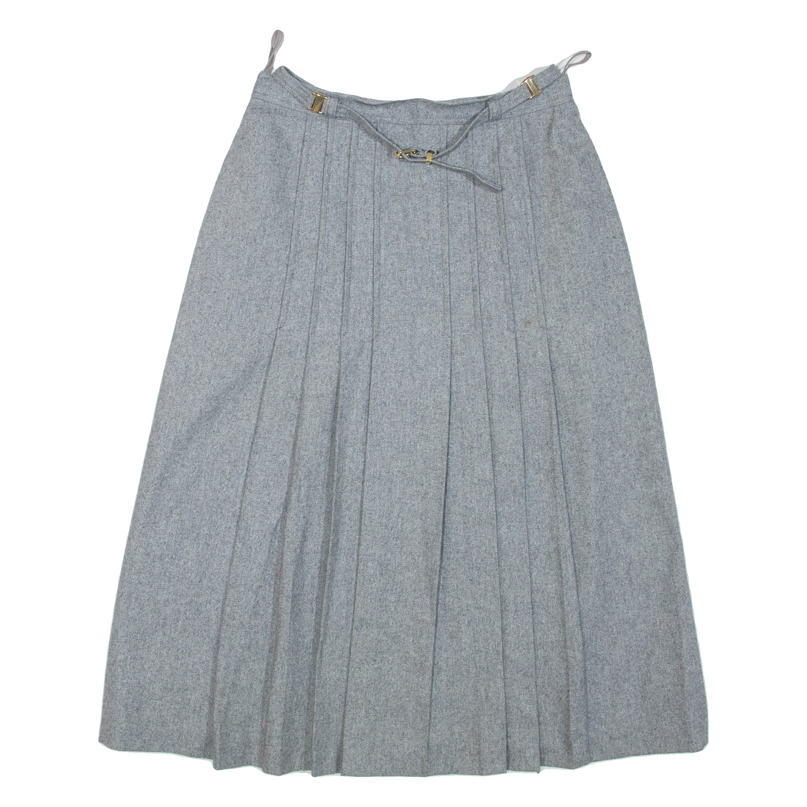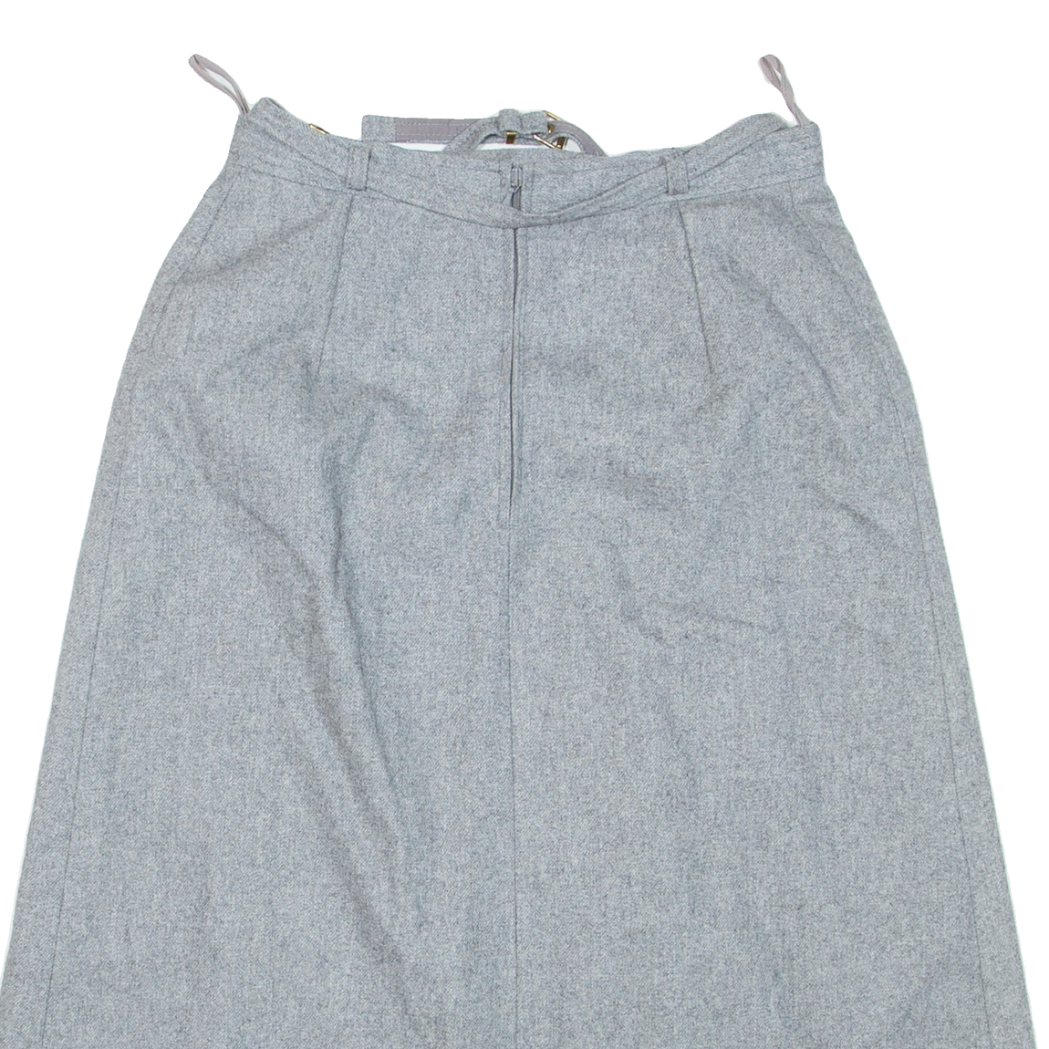CHARLES DUMAS Belted Womens A-Line Skirt Grey Knee Length Wool S