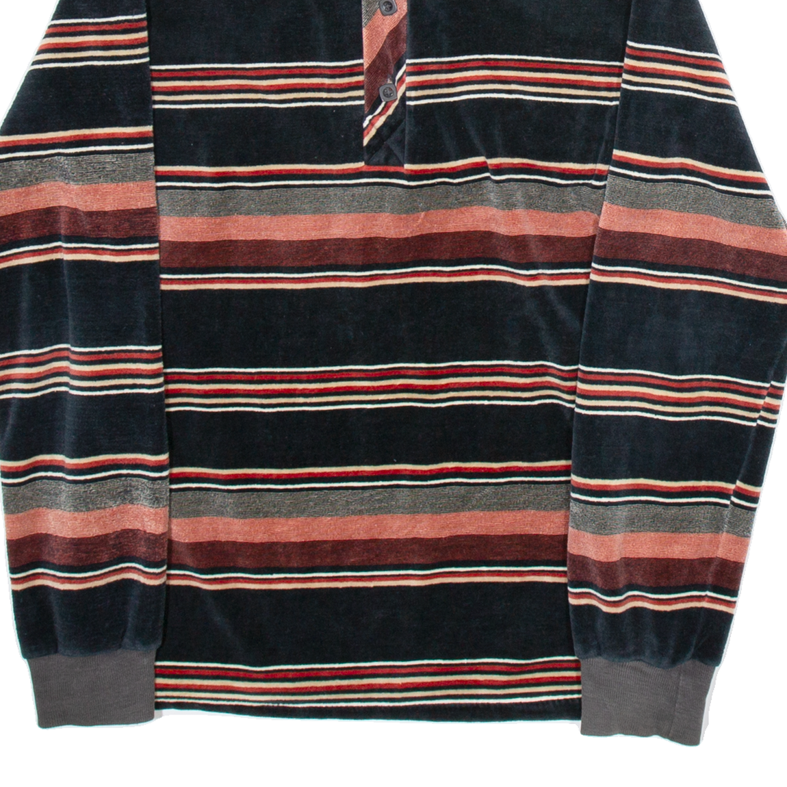 CHEMISE ET CIE Mens Polo Shirt Black Suede Striped Long Sleeve S