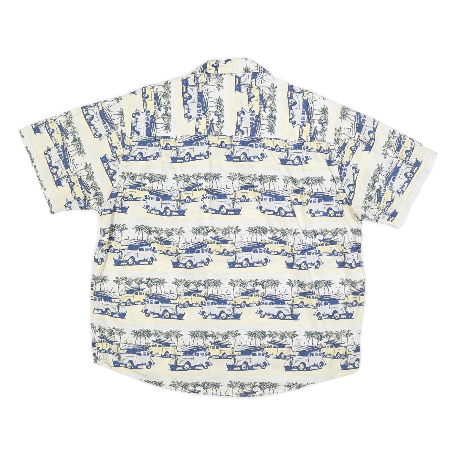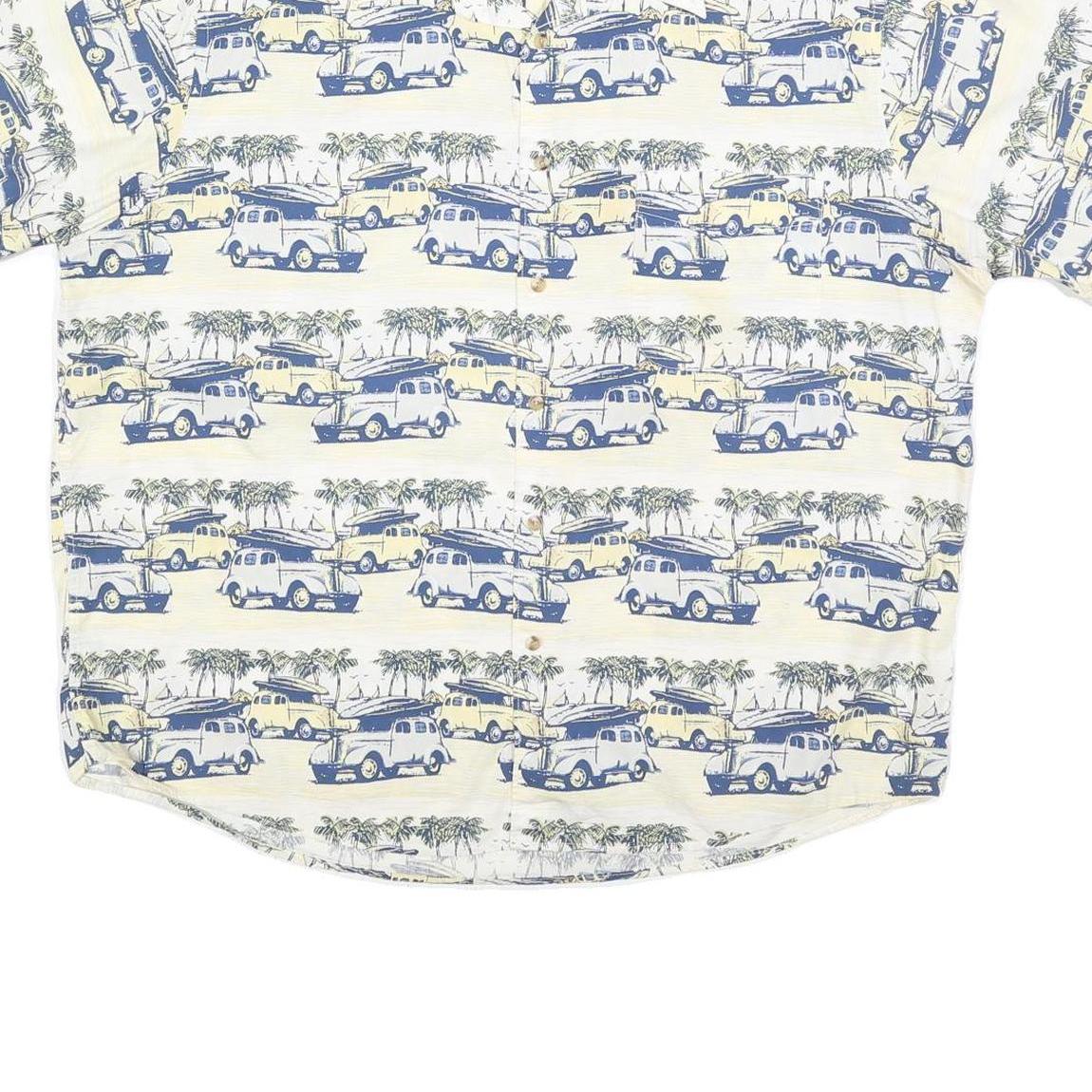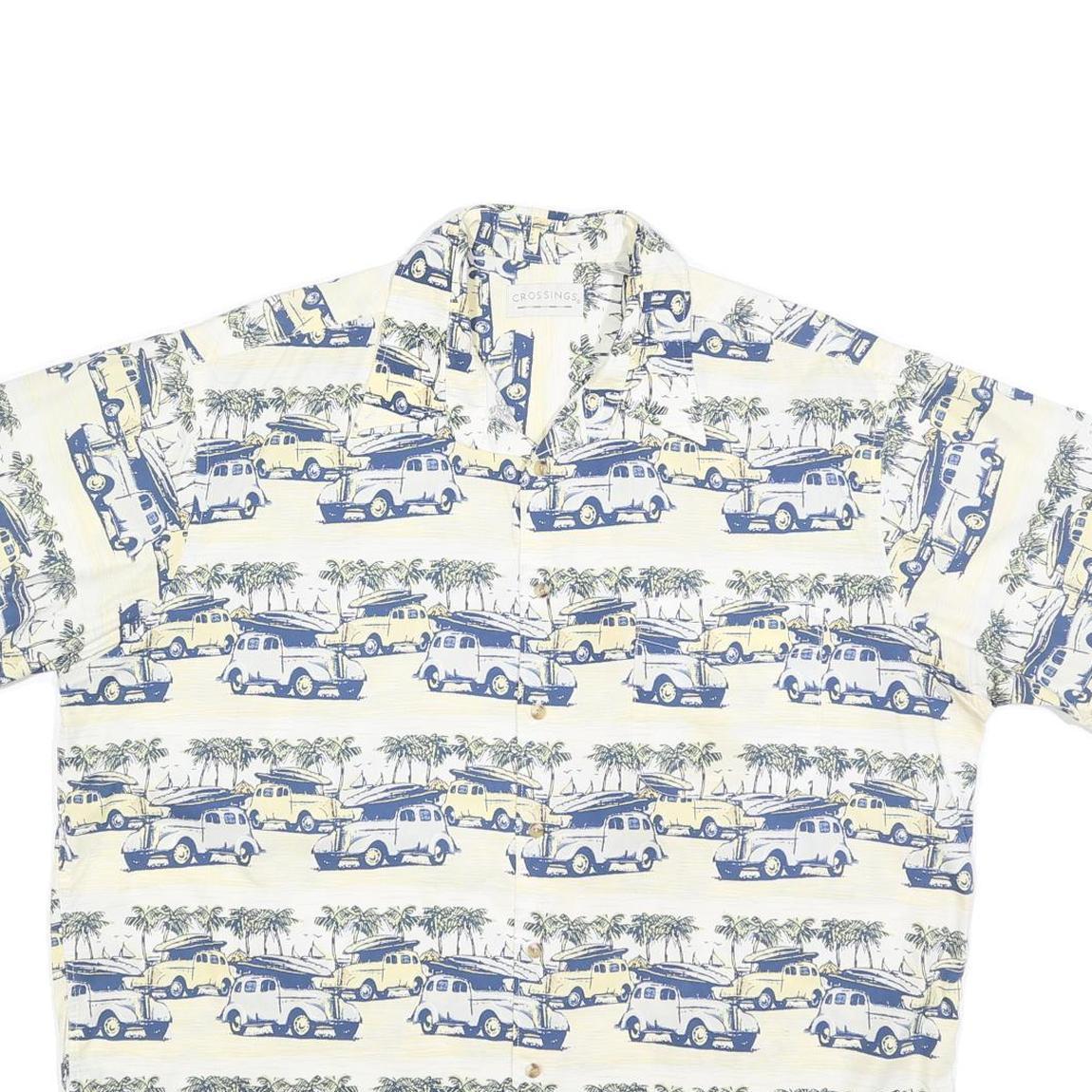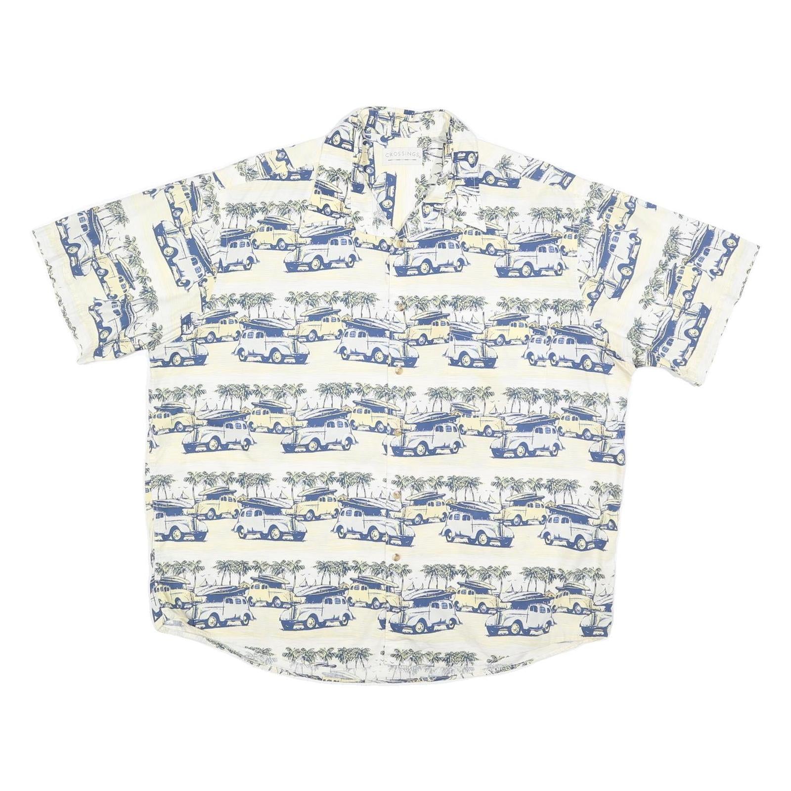CROSSINGS Mens Cream & Blue Vintage Print Cotton Blend Shirt XL Casual Summer