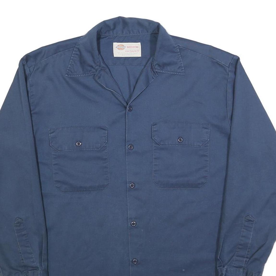 DICKIES Mens Blue Cotton Work Shirt M Classic Long Sleeve Button Pockets