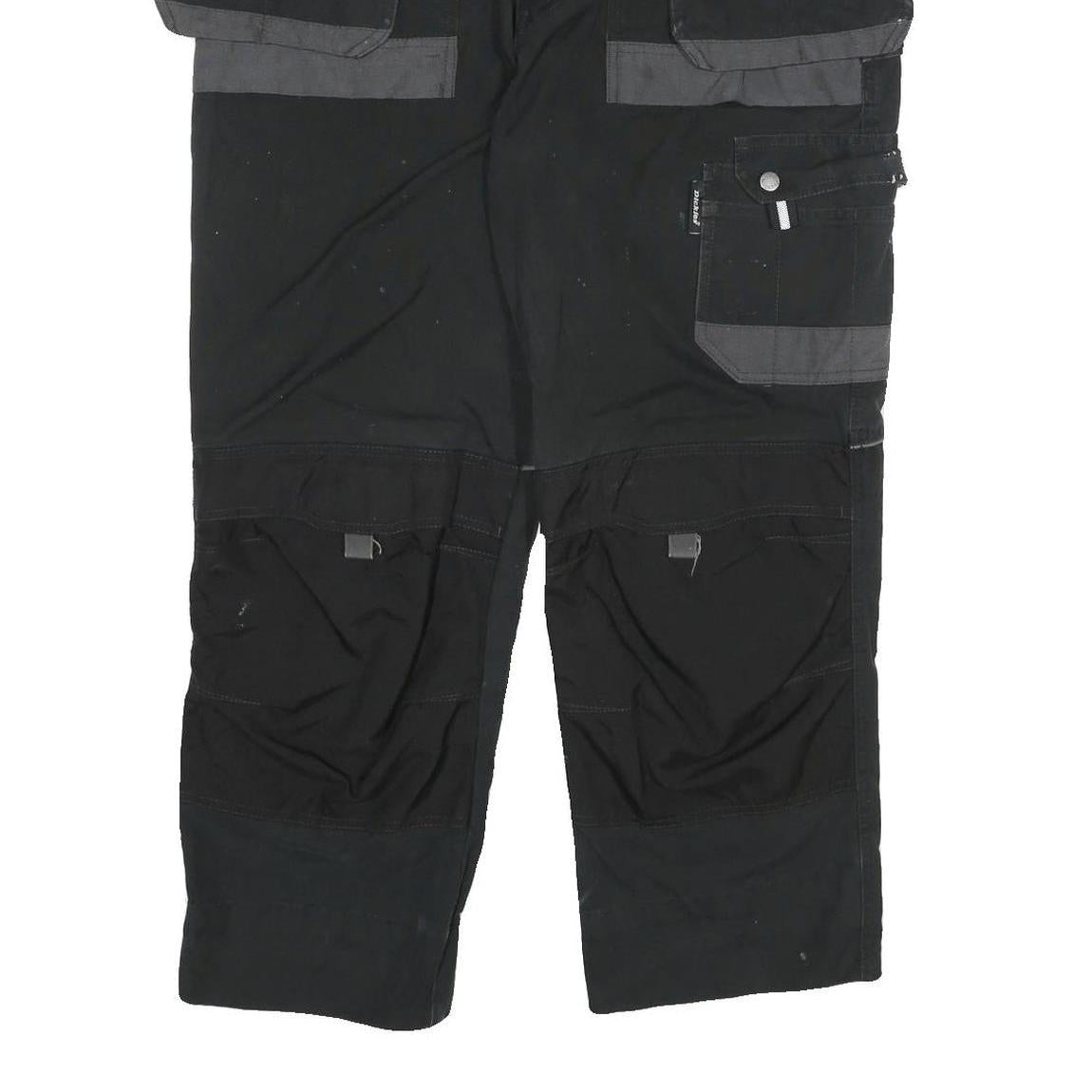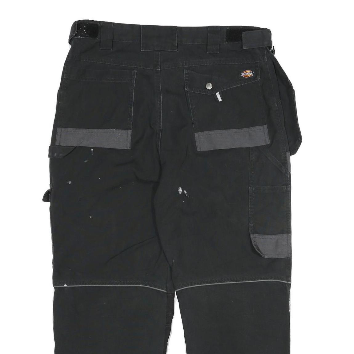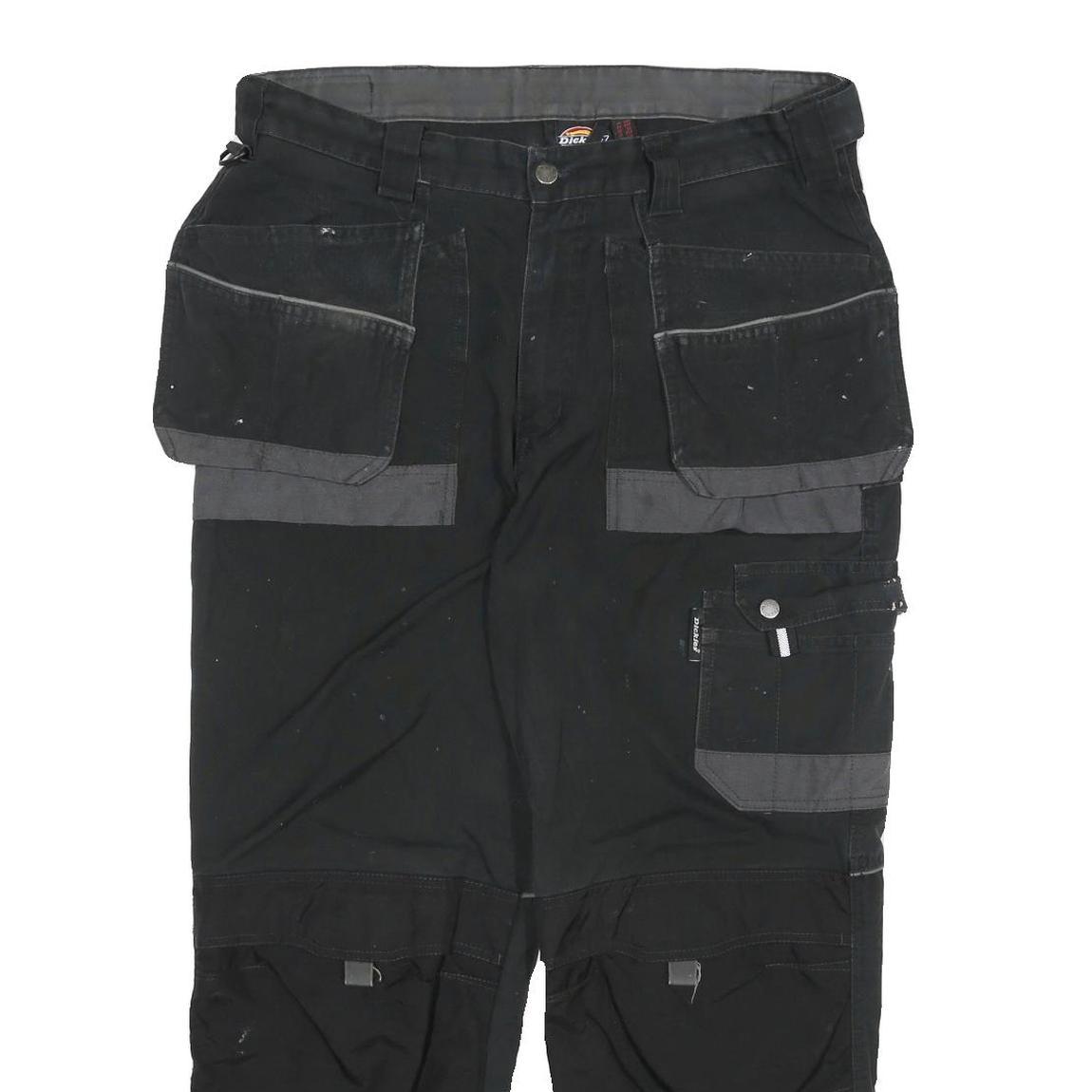 DICKIES Mens Cotton Blend Black Grey Relaxed Cargo Trousers W36 L27 Workwear