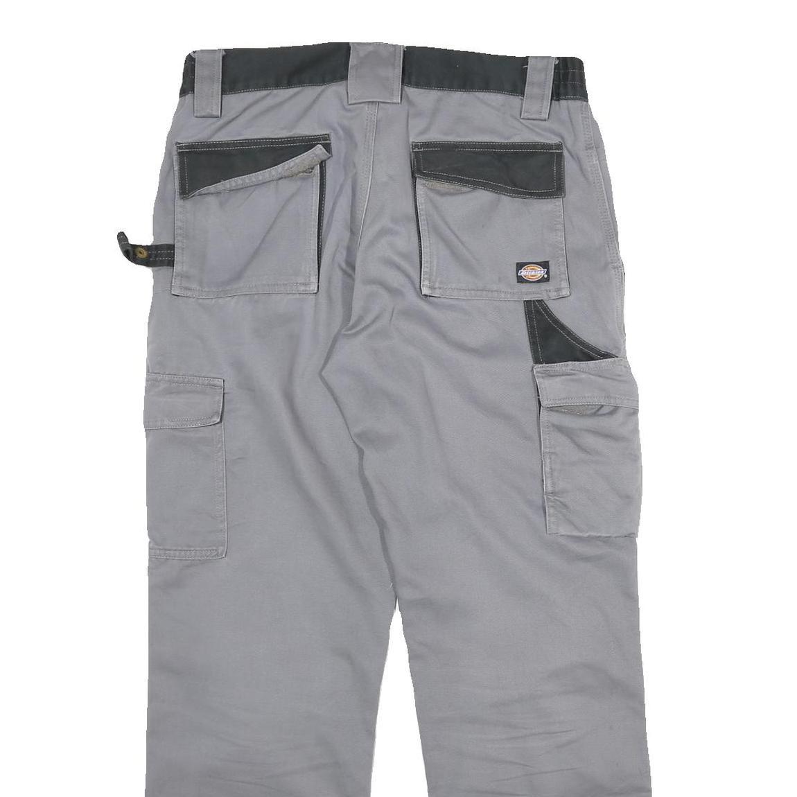 DICKIES Mens Cotton Blend Grey & Black Workwear Regular Straight Trousers W32
