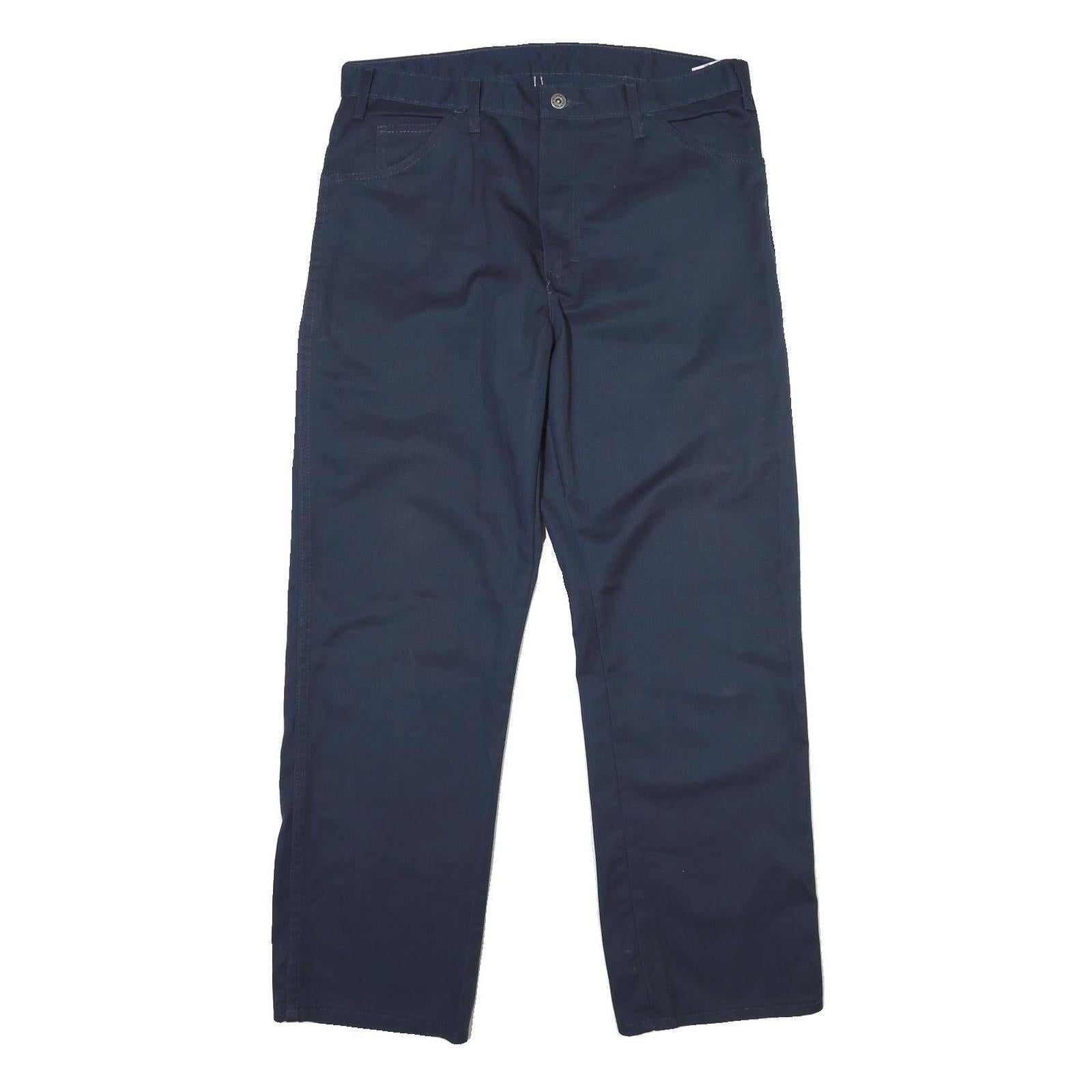 DICKIES Mens Cotton Navy Regular Straight Trousers W36 L30 Workwear Casual