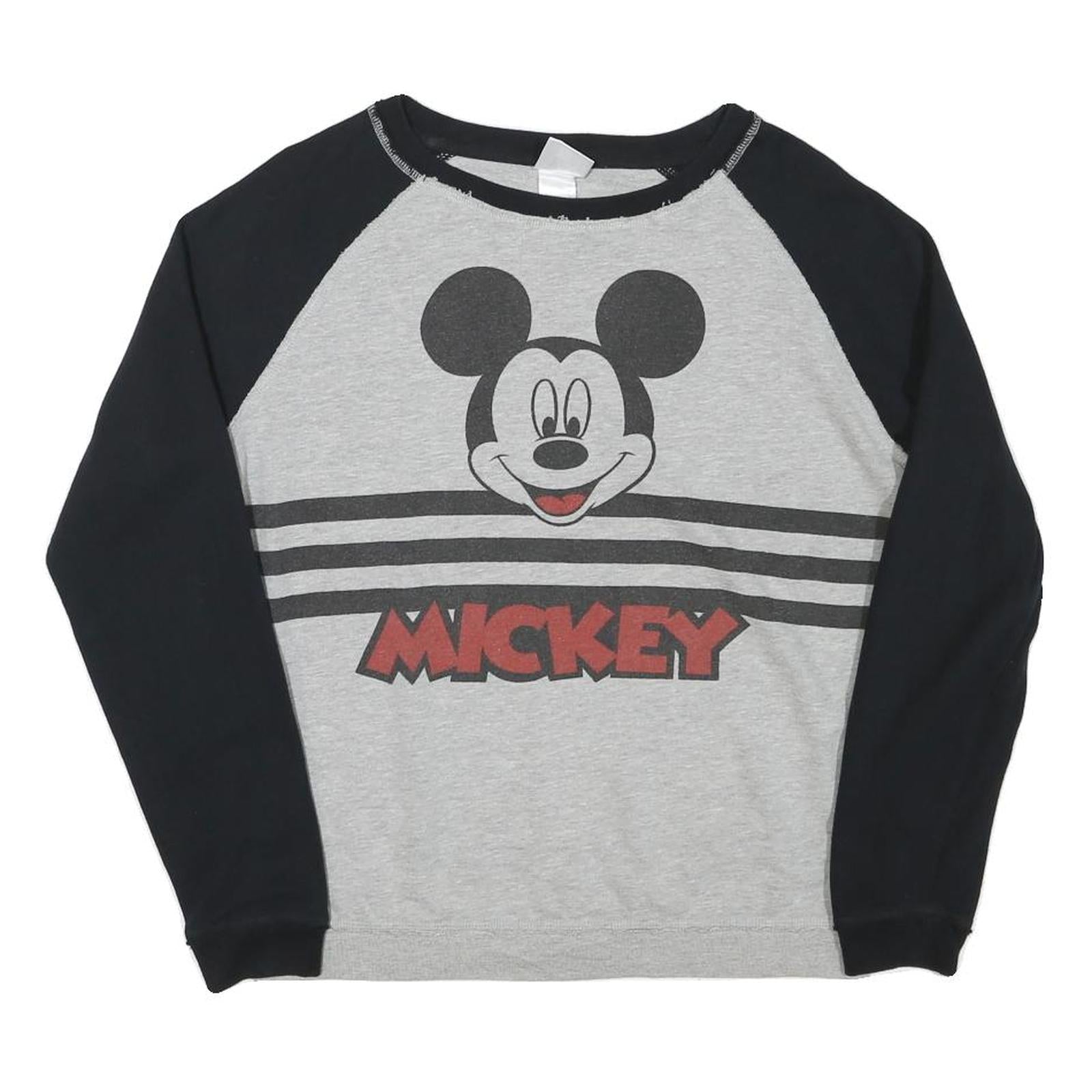 DISNEY Womens Grey & Black Mickey Crew Neck M Cotton Blend Sweatshirt