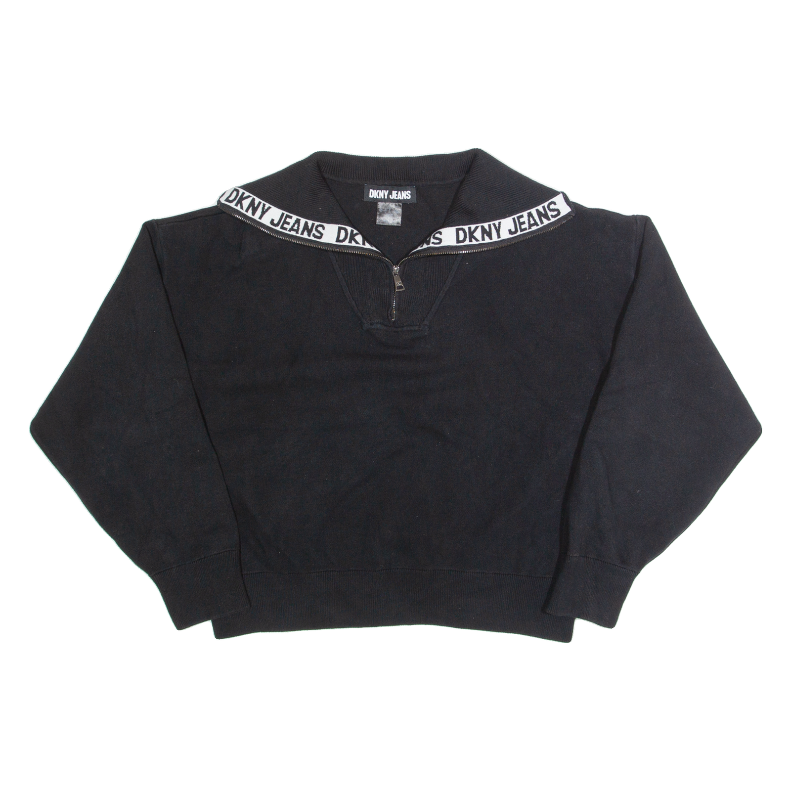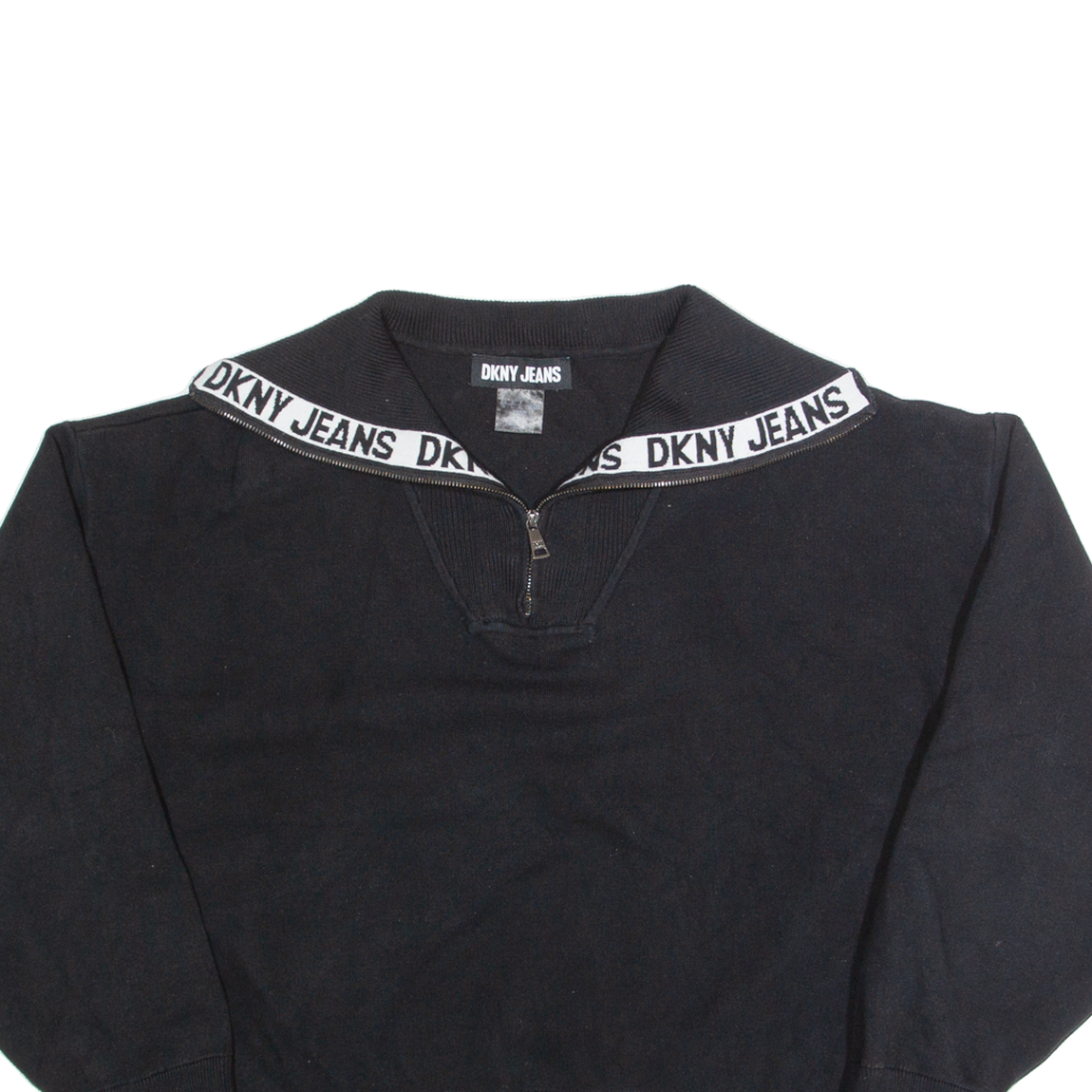DKNY Cropped Womens Jumper Black 1/4 Zip Tight Knit L