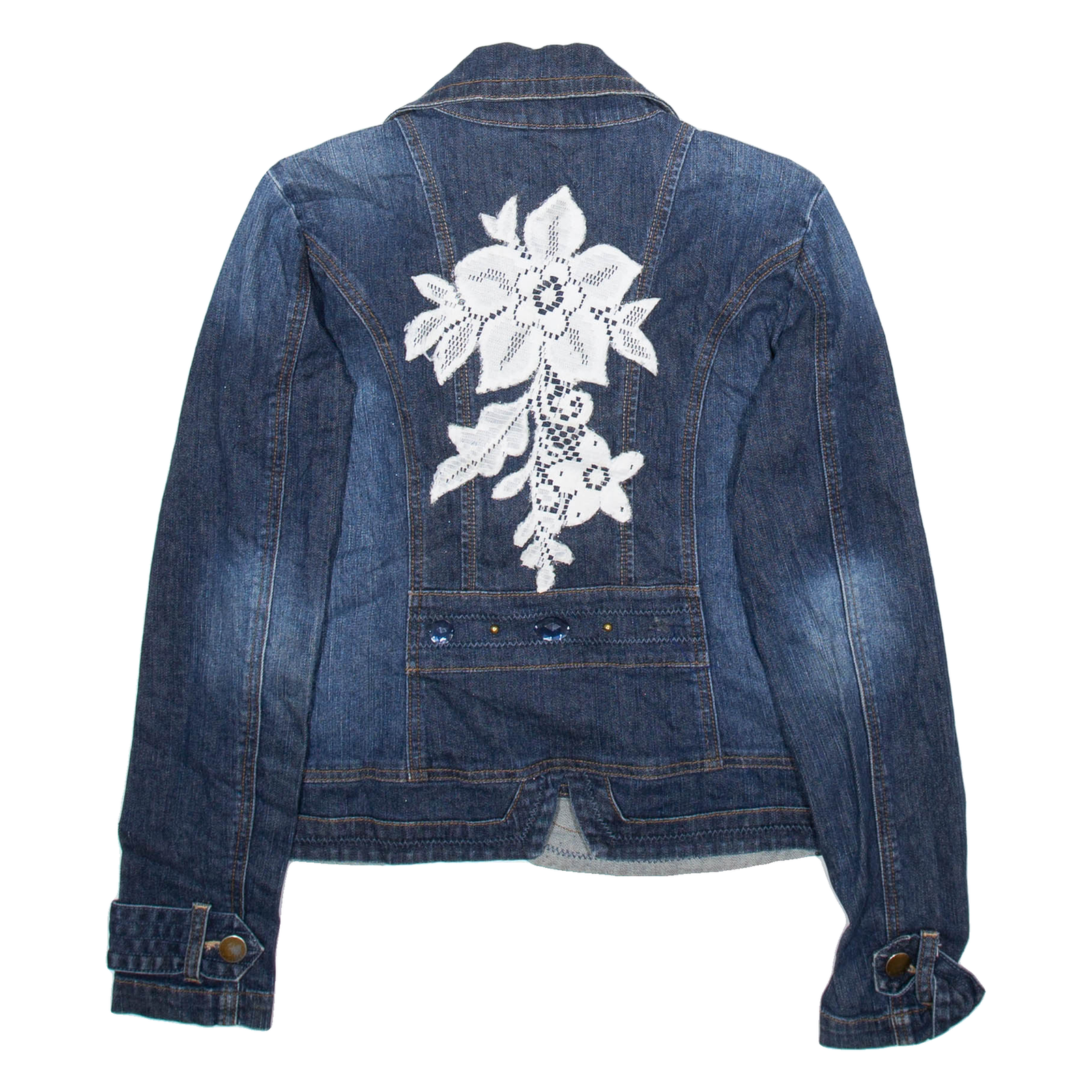 We understand that clothing sizes can vary depending on the brand, style, and age of the item. Therefore, along with providing the size stated in the label, we hand measure all our items to give you the exact measurements. Unless stated otherwise all measurements are taken with the item un-stretched.