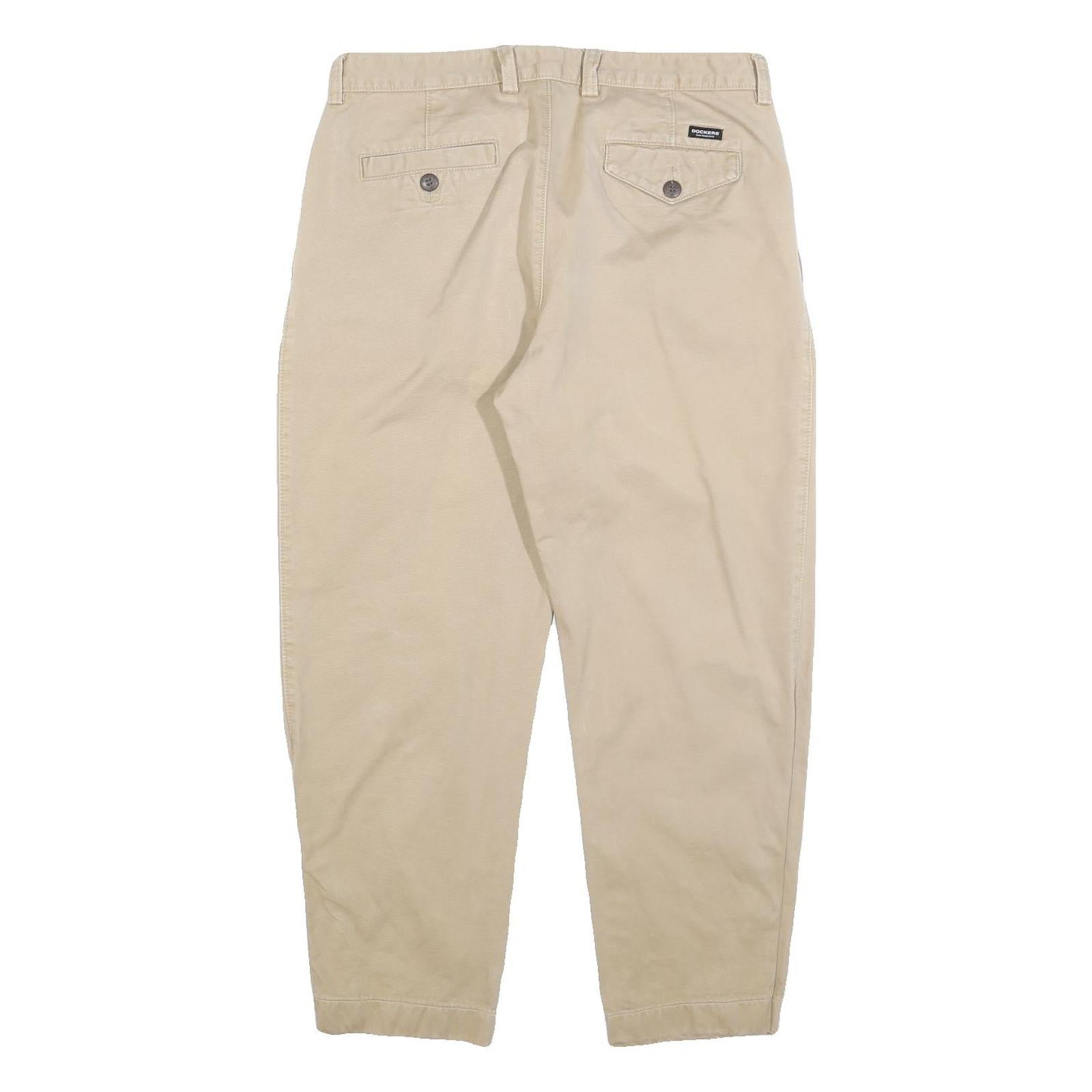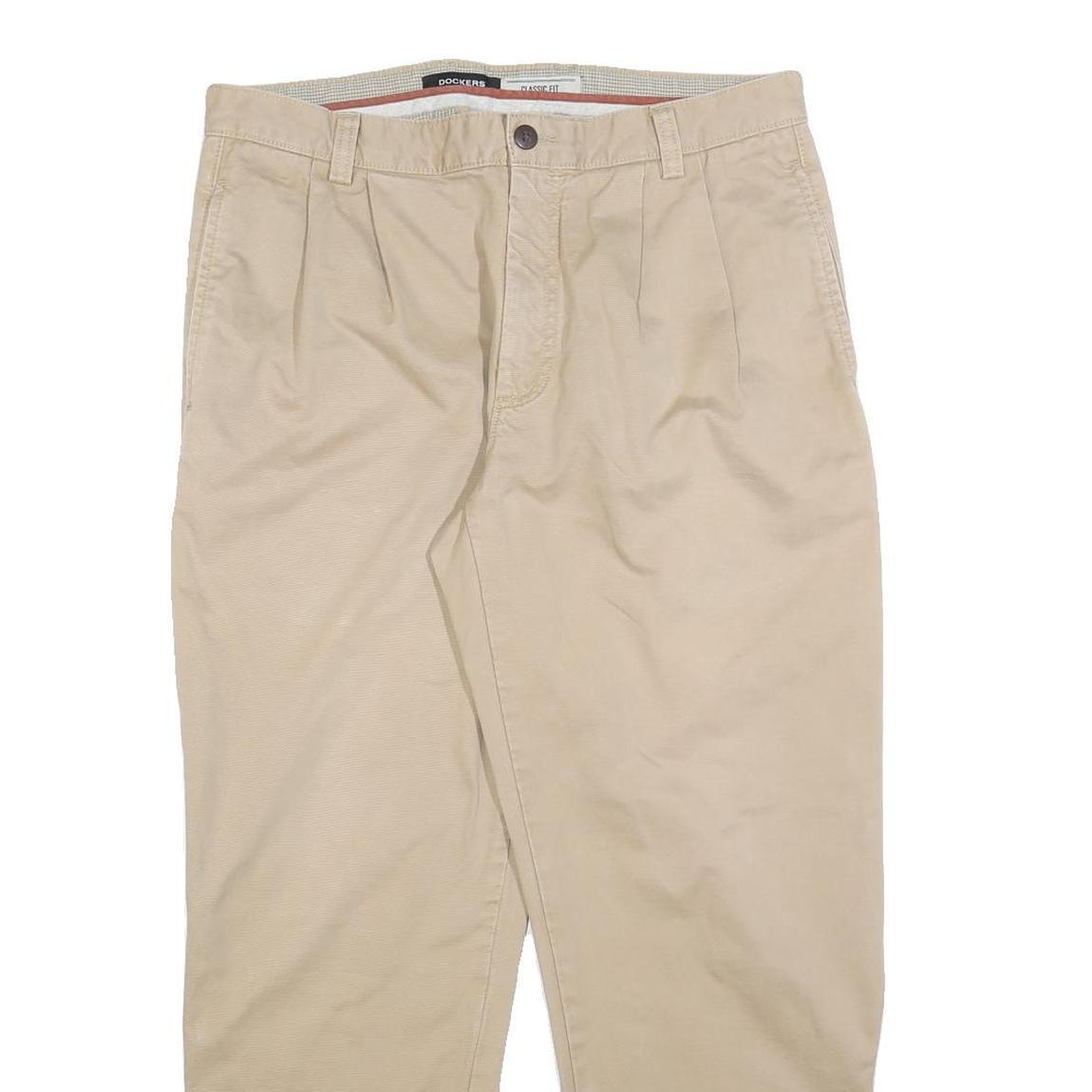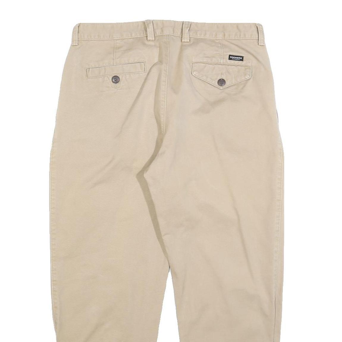 DOCKERS Mens Cotton Blend Beige Classic Trousers W34 L28 Casual Zip Pocket