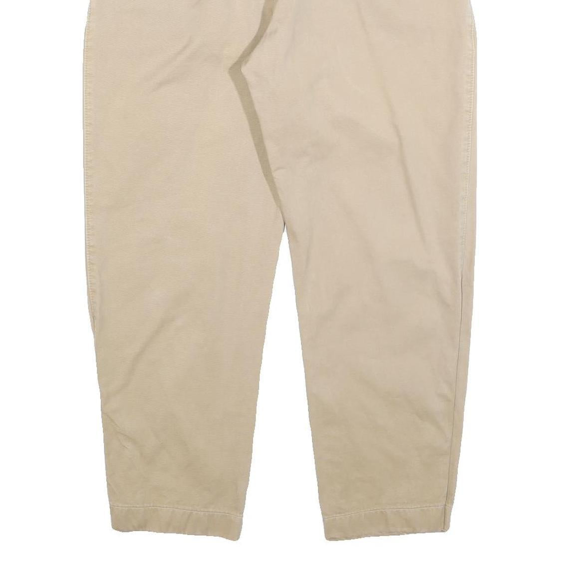 These Dockers trousers are crafted from a soft cotton blend in a classic beige colour. Featuring a neat zip closure with a single button fastening, they offer a timeless and versatile style. The front showcases subtle pleating for added detail, while discreet belt loops and side pockets complete the look.