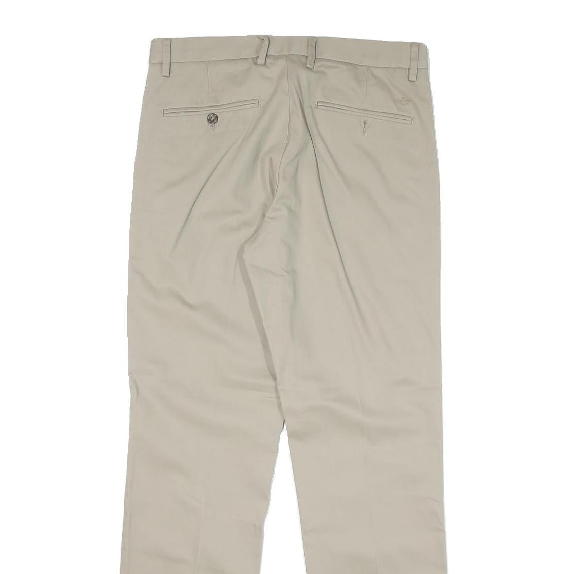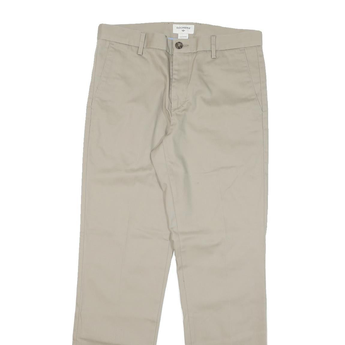 DOCKERS Mens Cotton Blend Beige Slim Straight Trousers W31 L32 Casual Smart