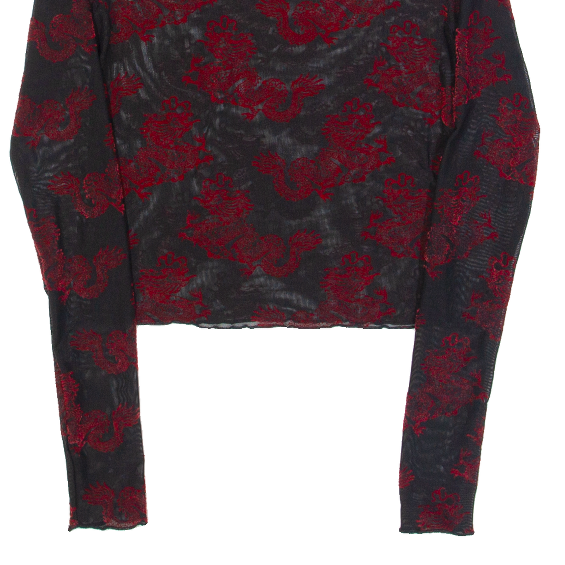 FB SISTER Dragon Design Mesh Womens Cropped Top Black Long Sleeve XS
