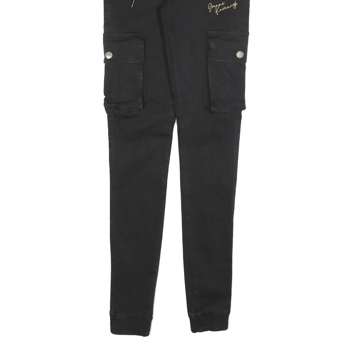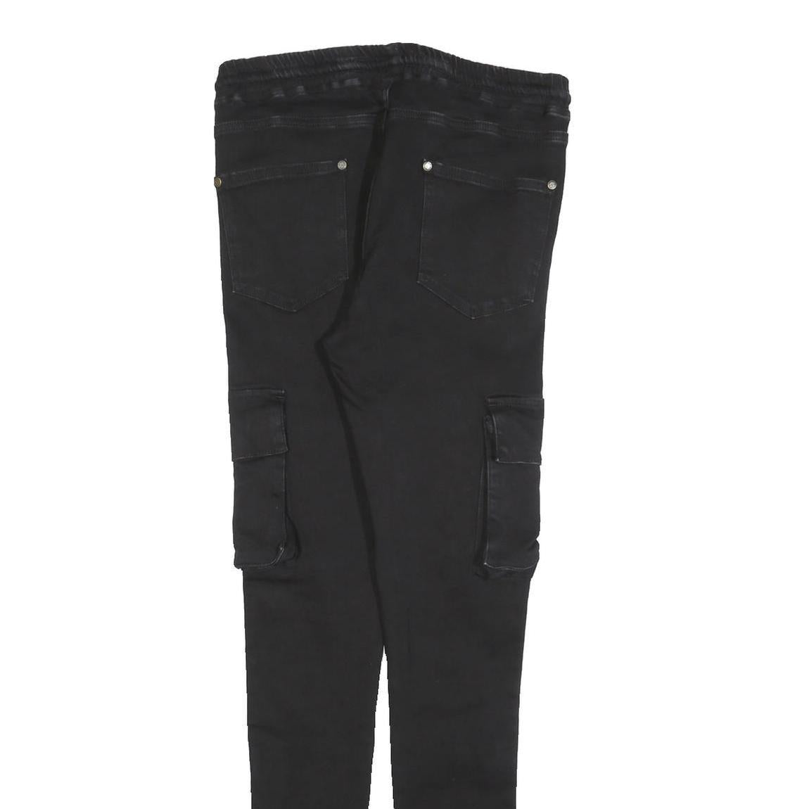 GIANNI KAVANAGH Mens Cotton Blend Black Slim Cargo Trousers W30 L32 Drawstring