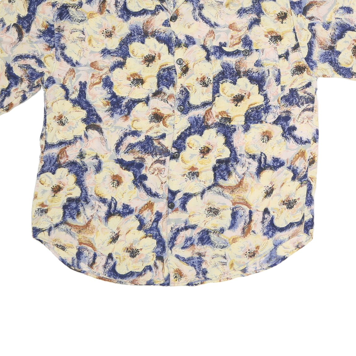 GOOUCH Mens Cream & Blue Floral Cotton Shirt M Summer Casual Beachwear