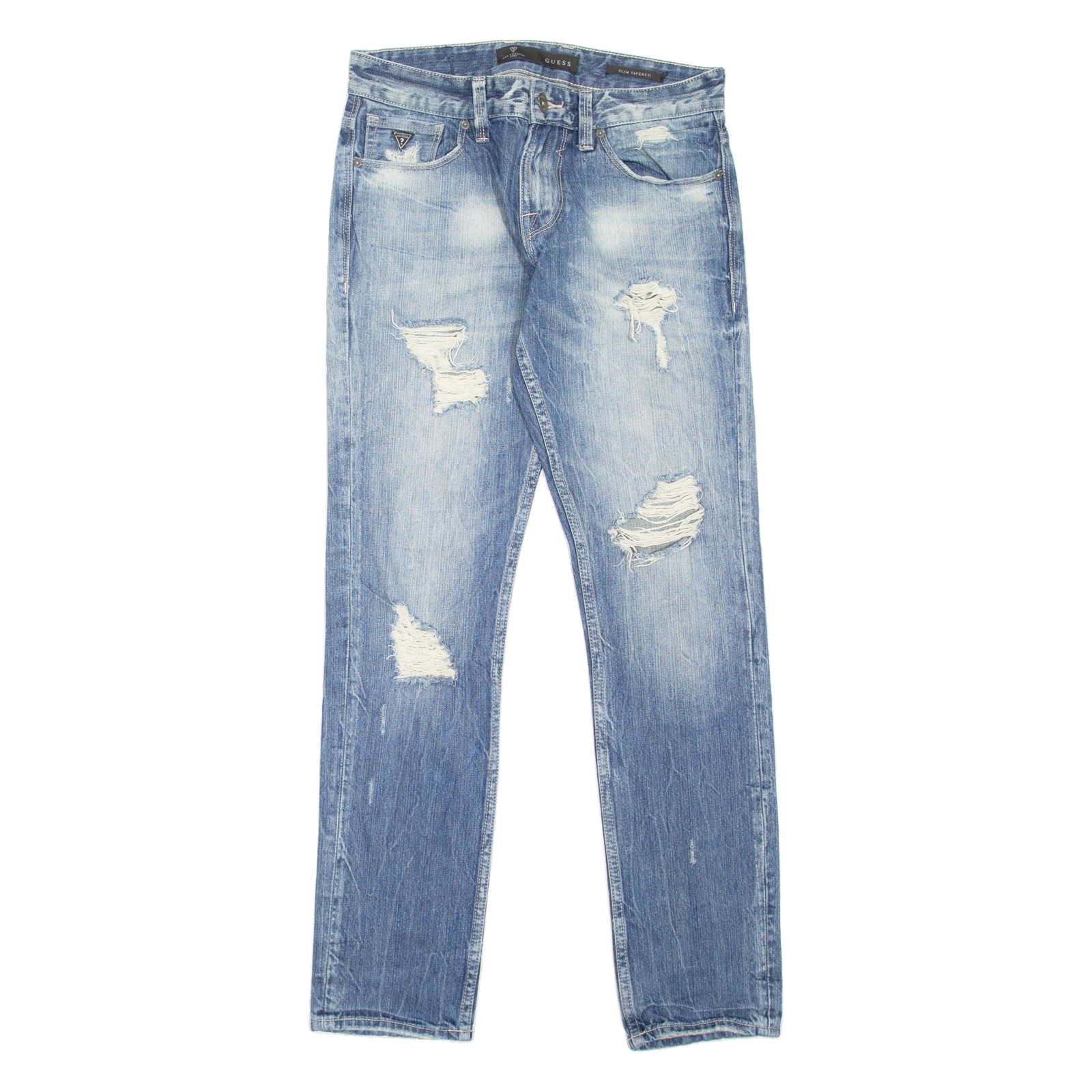 GUESS Distressed Mens Jeans Blue Slim Tapered Stone Wash W30 L32