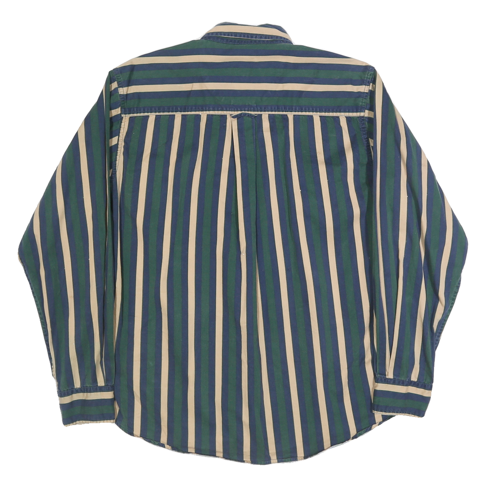 GULF TRADERS Mens Blue Green & Beige Stripe Shirt M Button Down Cotton