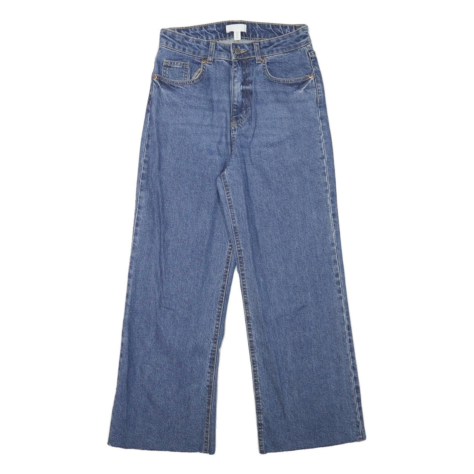 H&M Womens Relaxed Blue Denim Raw Hem Wide-Leg Jeans W27 L27 Relaxed Fit