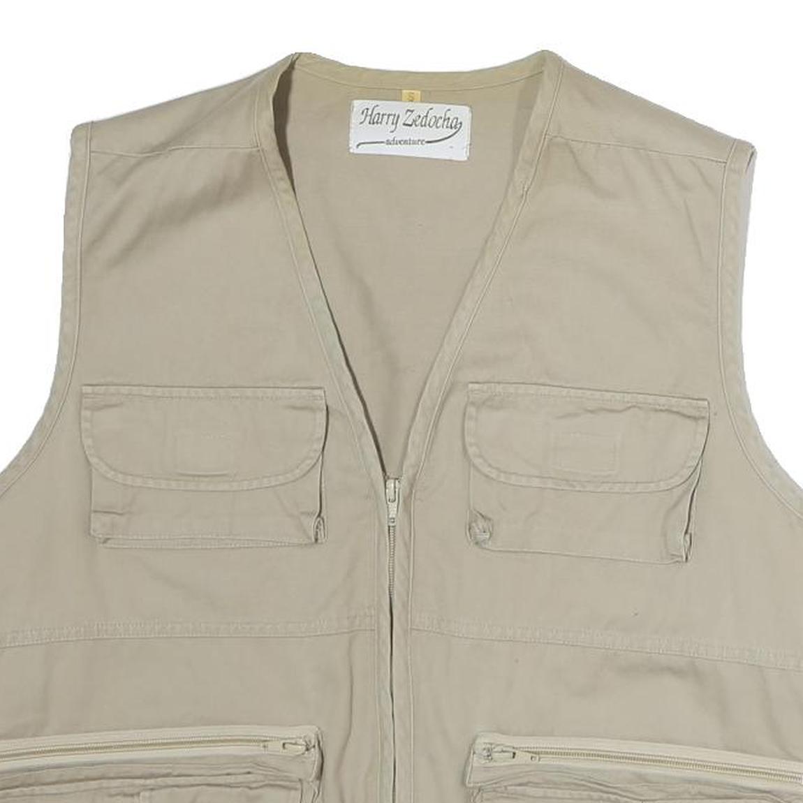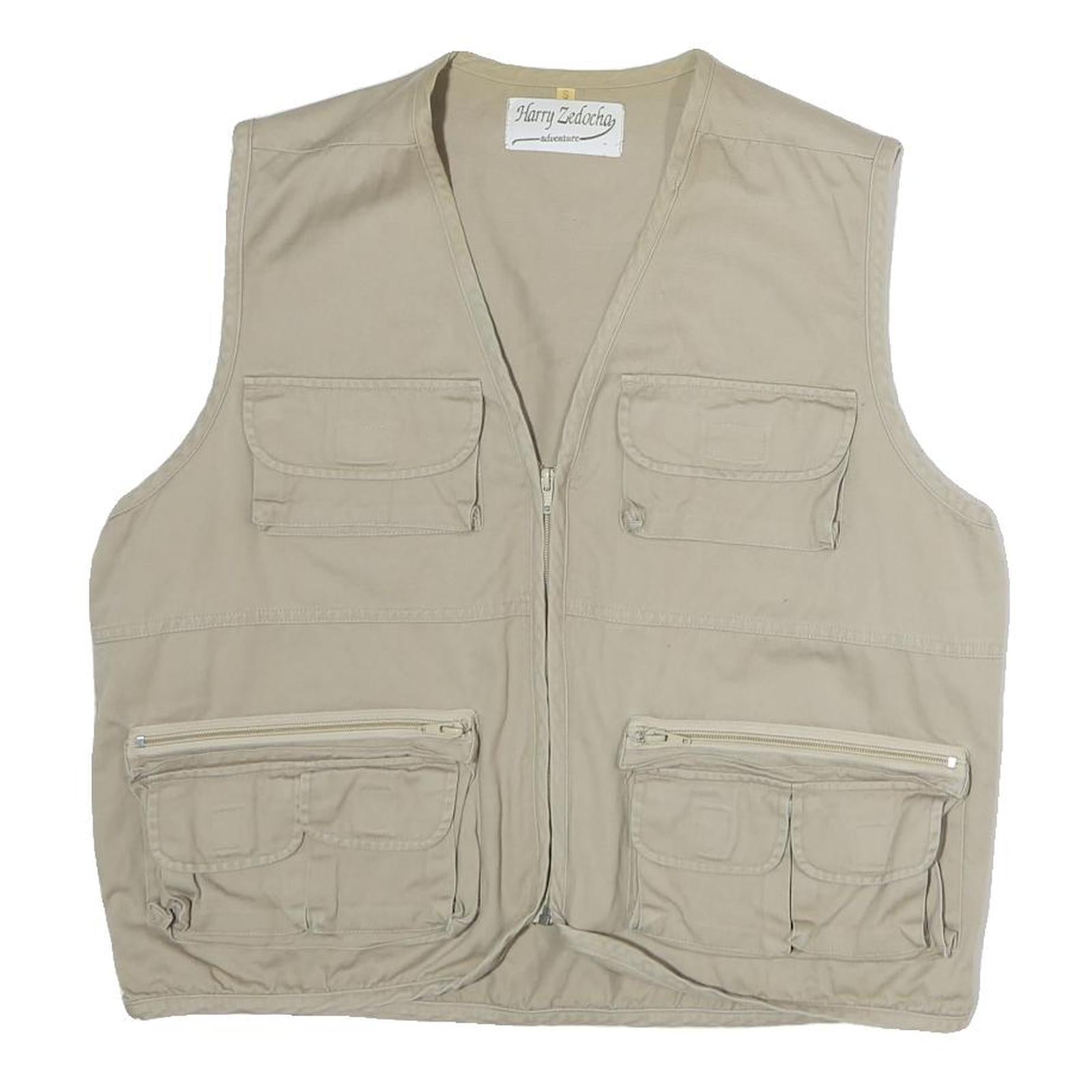 HARRY SEDOCHA Mens Beige Cotton Zip Jacket L Casual Utility Vest Pockets