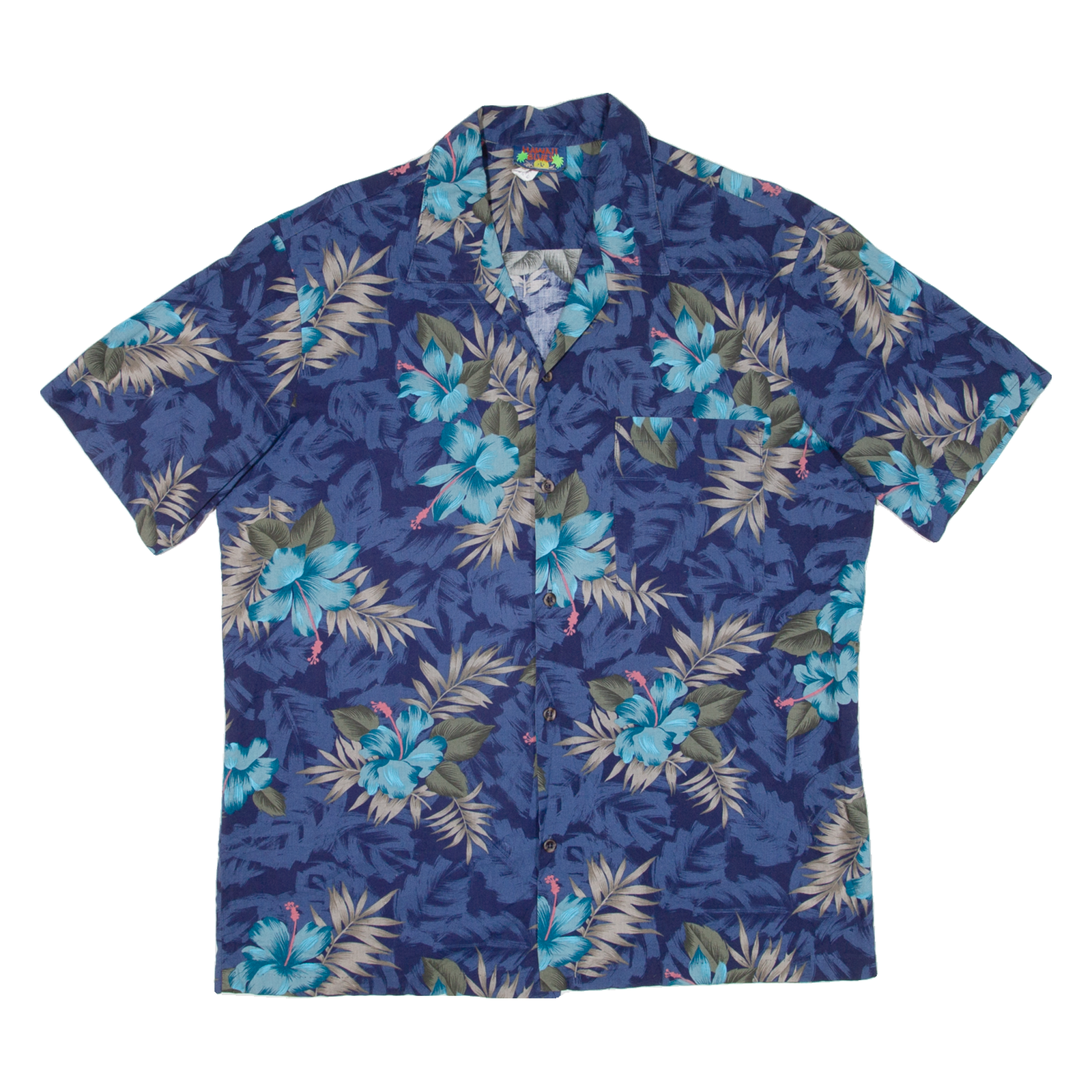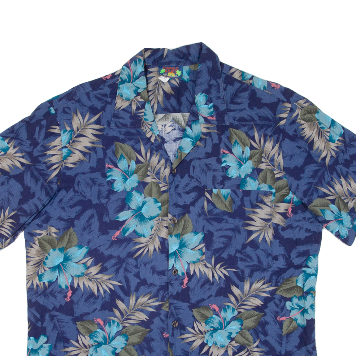HAWAII BLUES Mens Hawaiian Shirt Blue Floral L