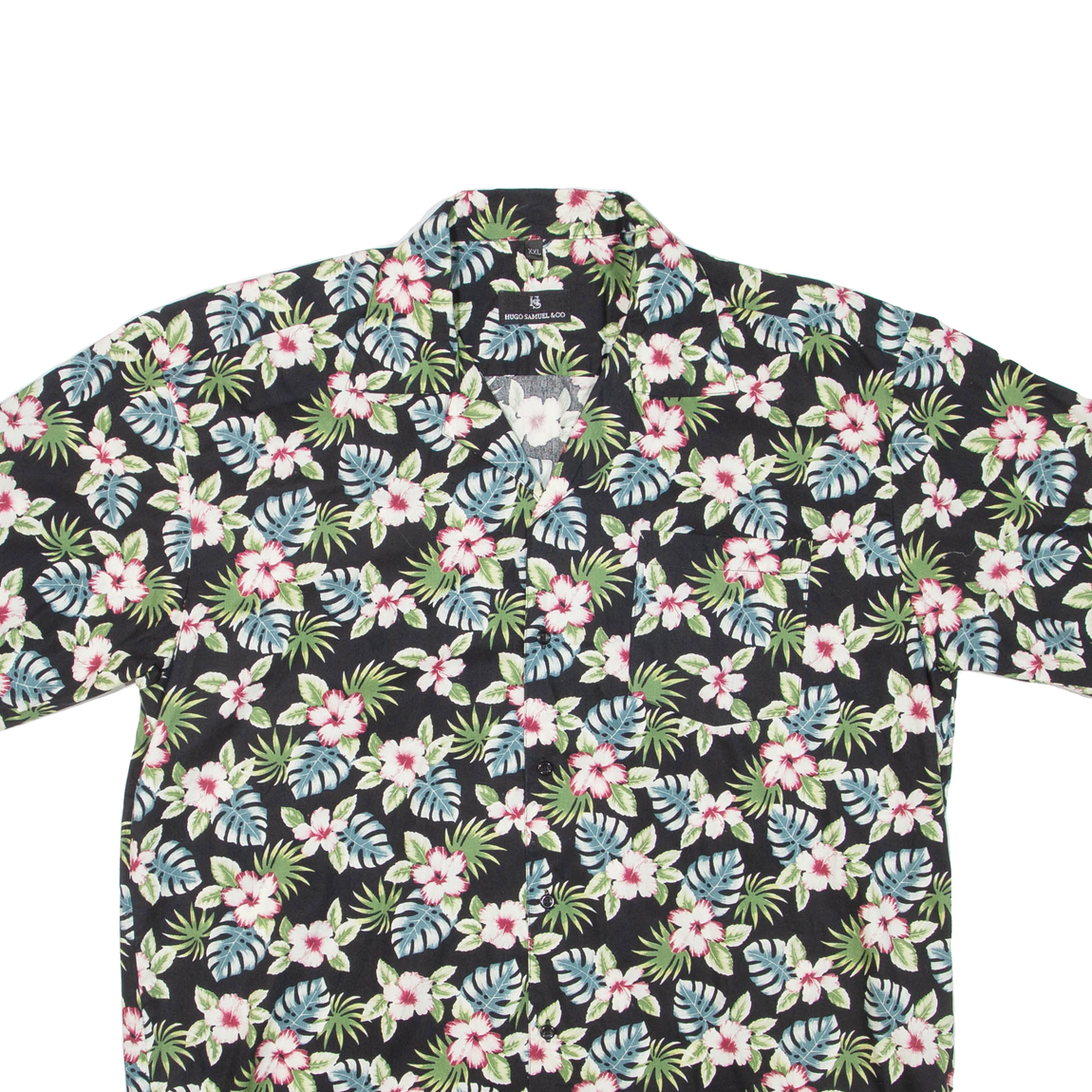 HUGO SAMUEL & CO Mens Hawaiian Shirt Black Floral 2XL