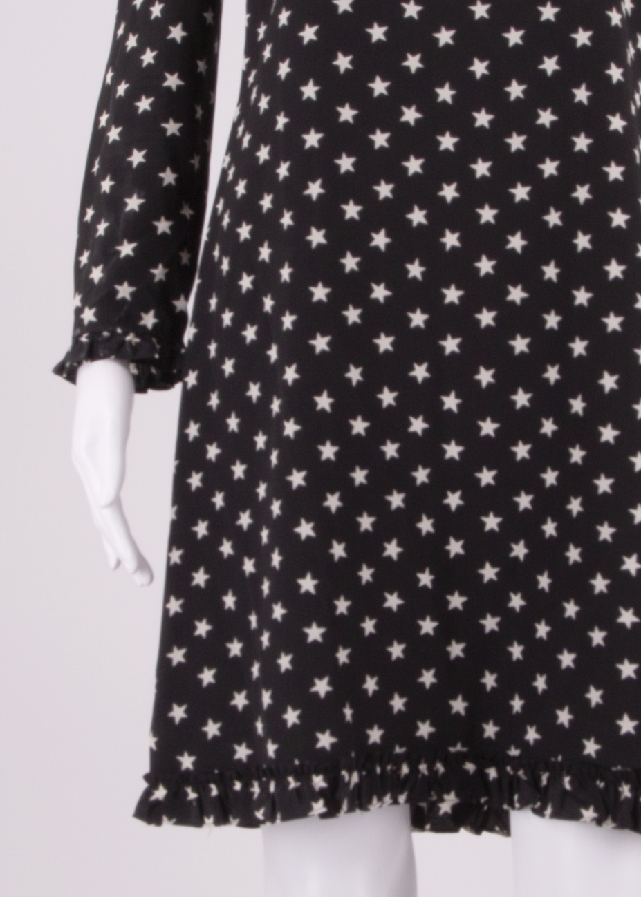 J.CREW All Over Star Print Womens Shift Dress Black Silk Knee Length XS