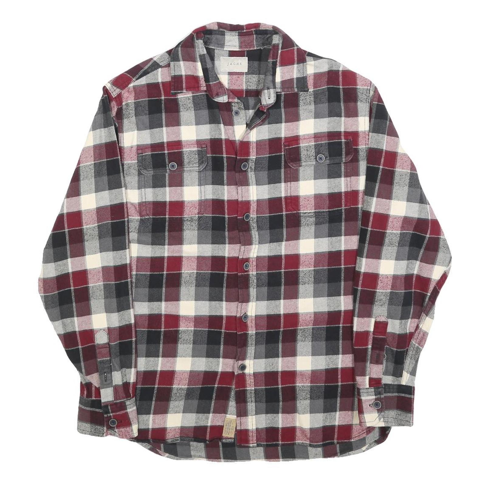 JACHS Mens Burgundy Black & Cream Check Shirt M Casual Cotton Long Sleeve