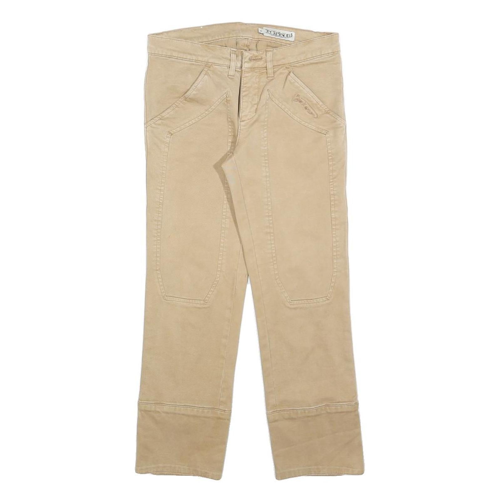 JECKERSON Womens Cotton Blend Beige Slim Straight Trousers W26 L25 Stylish