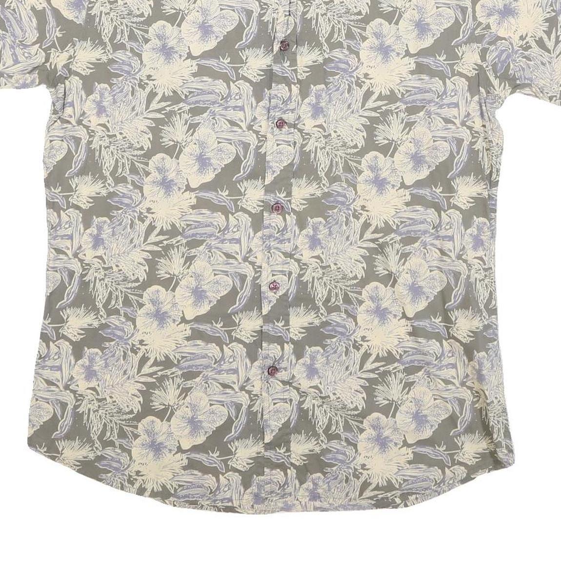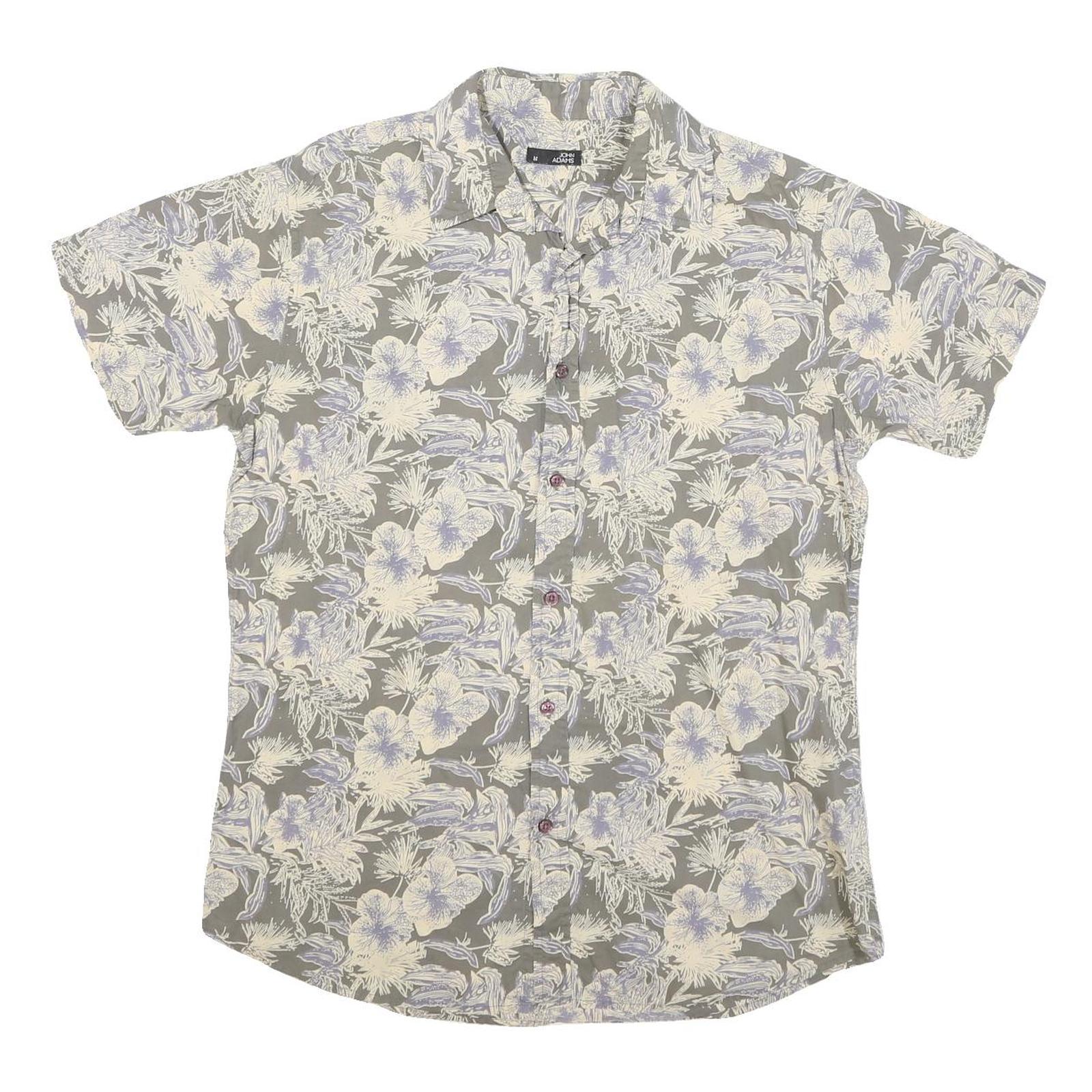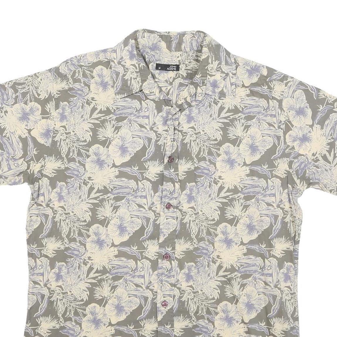 JOHN ADAMS Mens Grey Cream Floral Print Cotton Blend Shirt M Summer Casual