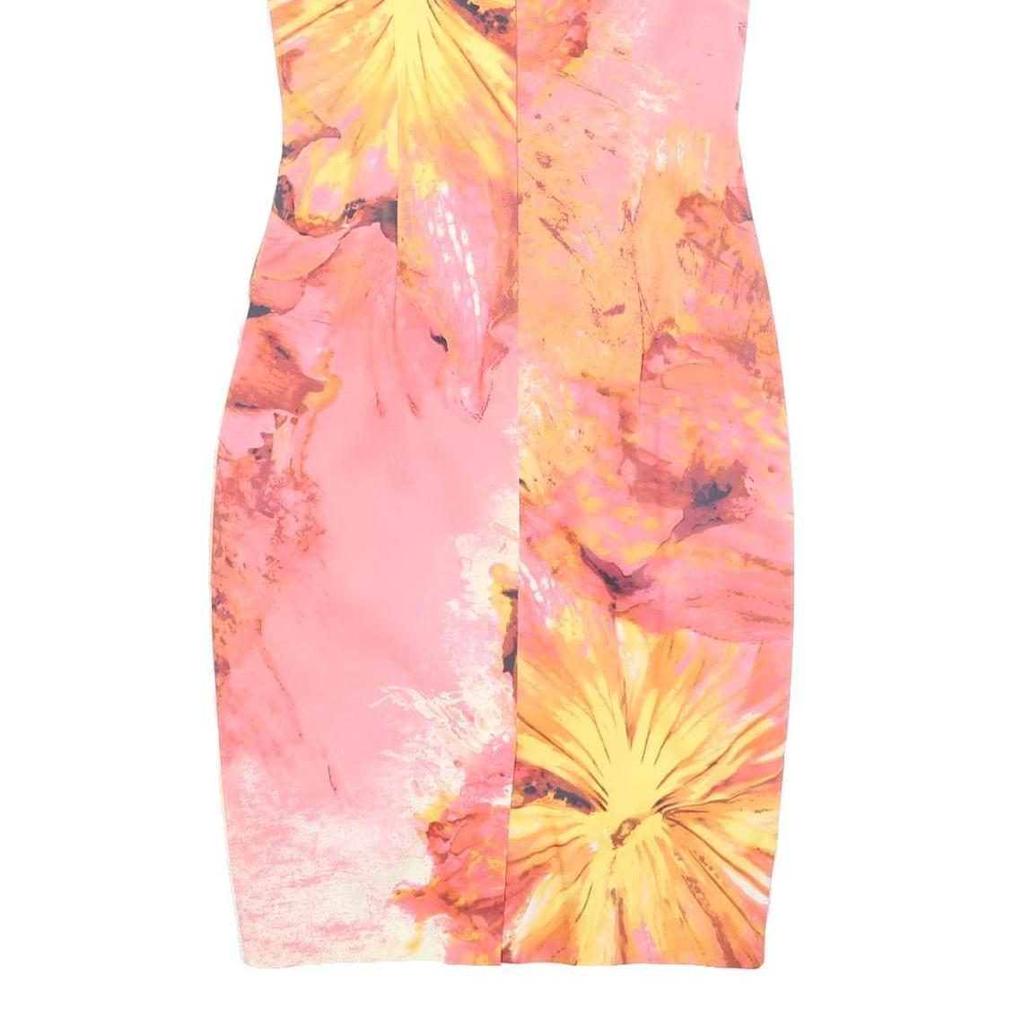 KAREN MILLEN Womens Pink & Yellow Floral Bodycon Polyester Dress UK 10