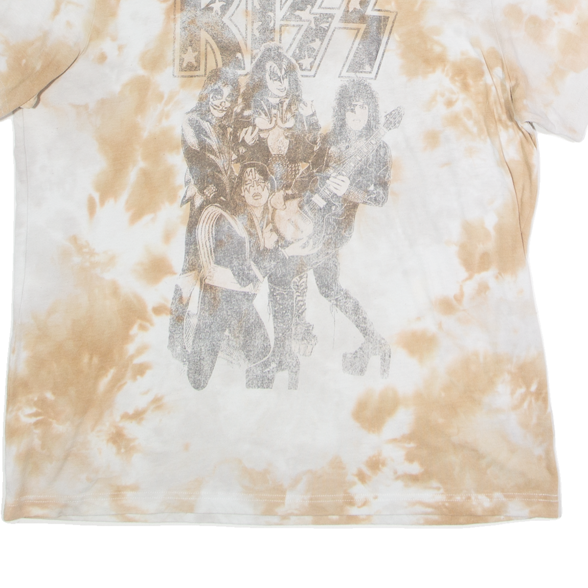 KISS Tie Dye Mens T-Shirt Brown Button Neck L