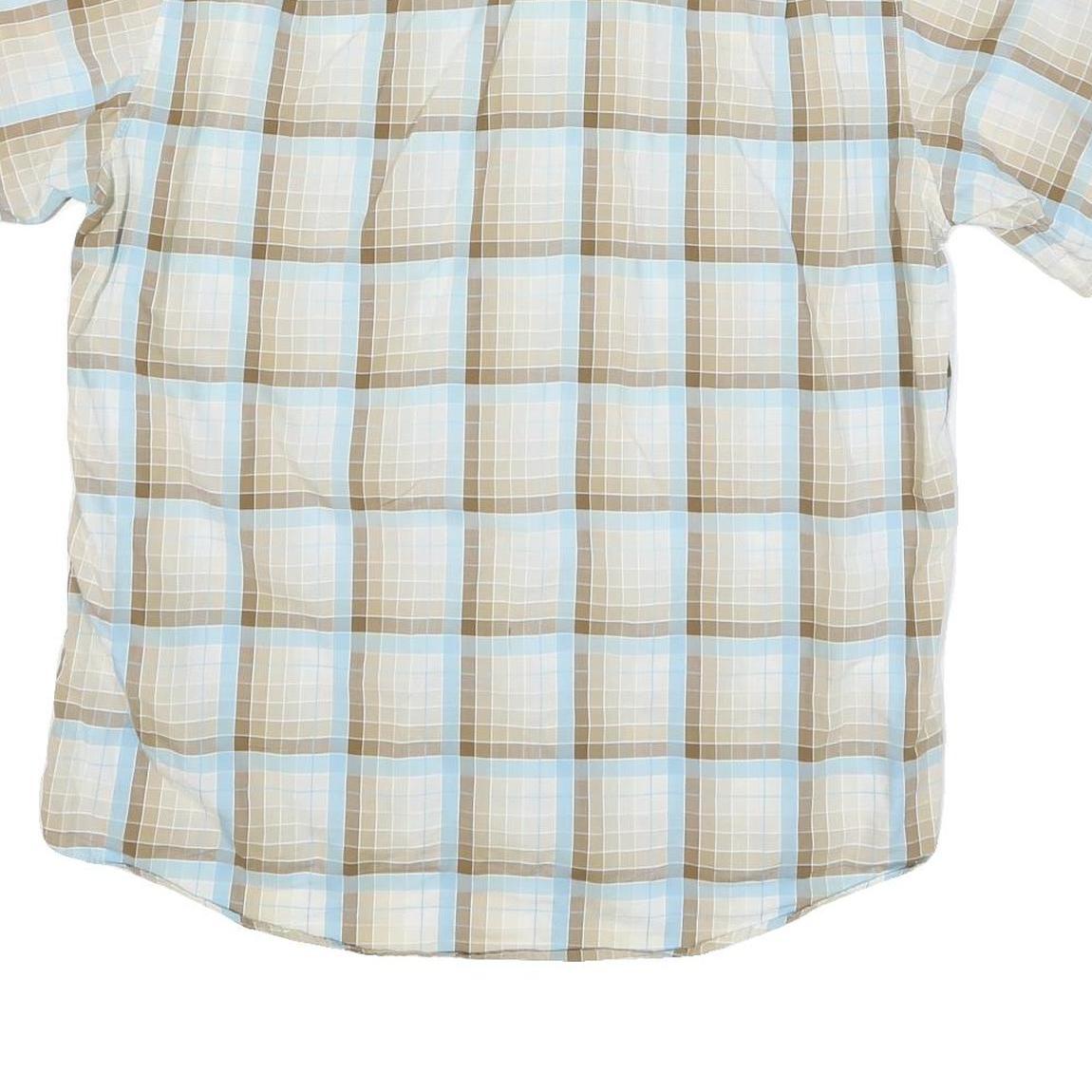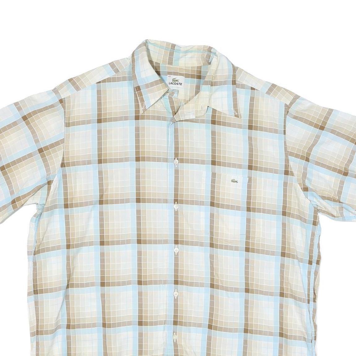 LACOSTE Mens Beige & Blue Check Shirt XL Casual Cotton Blend Short Sleeve
