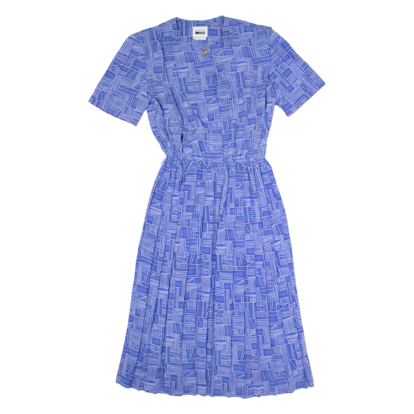 Leslie Fay Womens A-Line Kleid Blau 90er Geometrische Kurzarm Midi S
